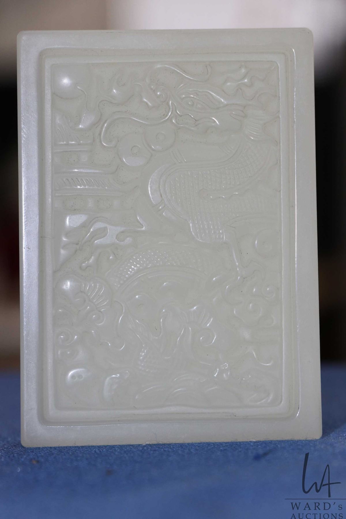 Rectangular celadon white jade panel 2 1/2" X 3 1/2"