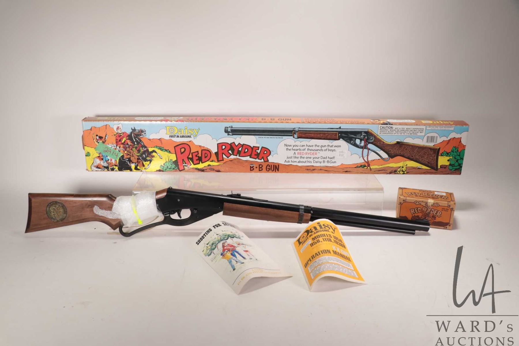 Red Ryder BB gun with original box and manuals, purportedly unfired and condition would support that