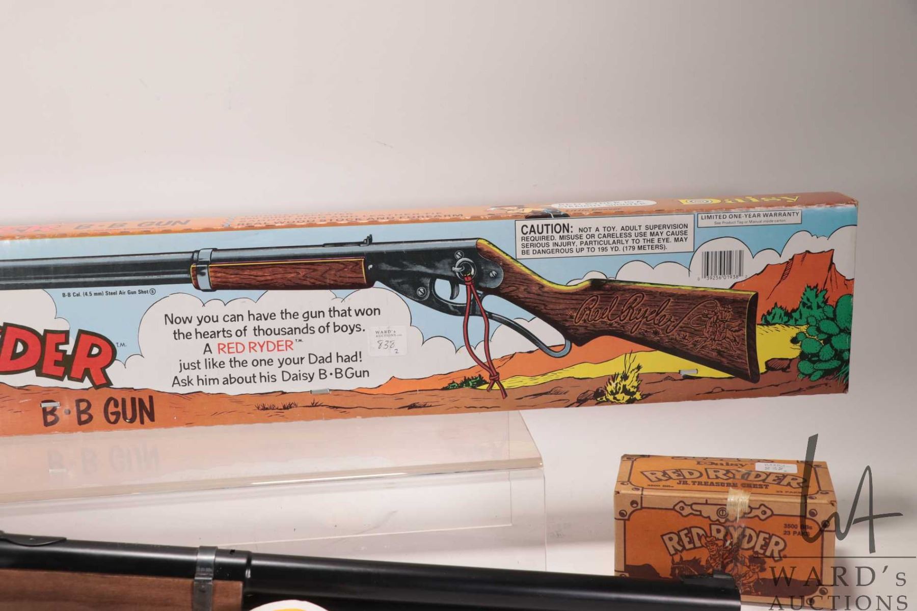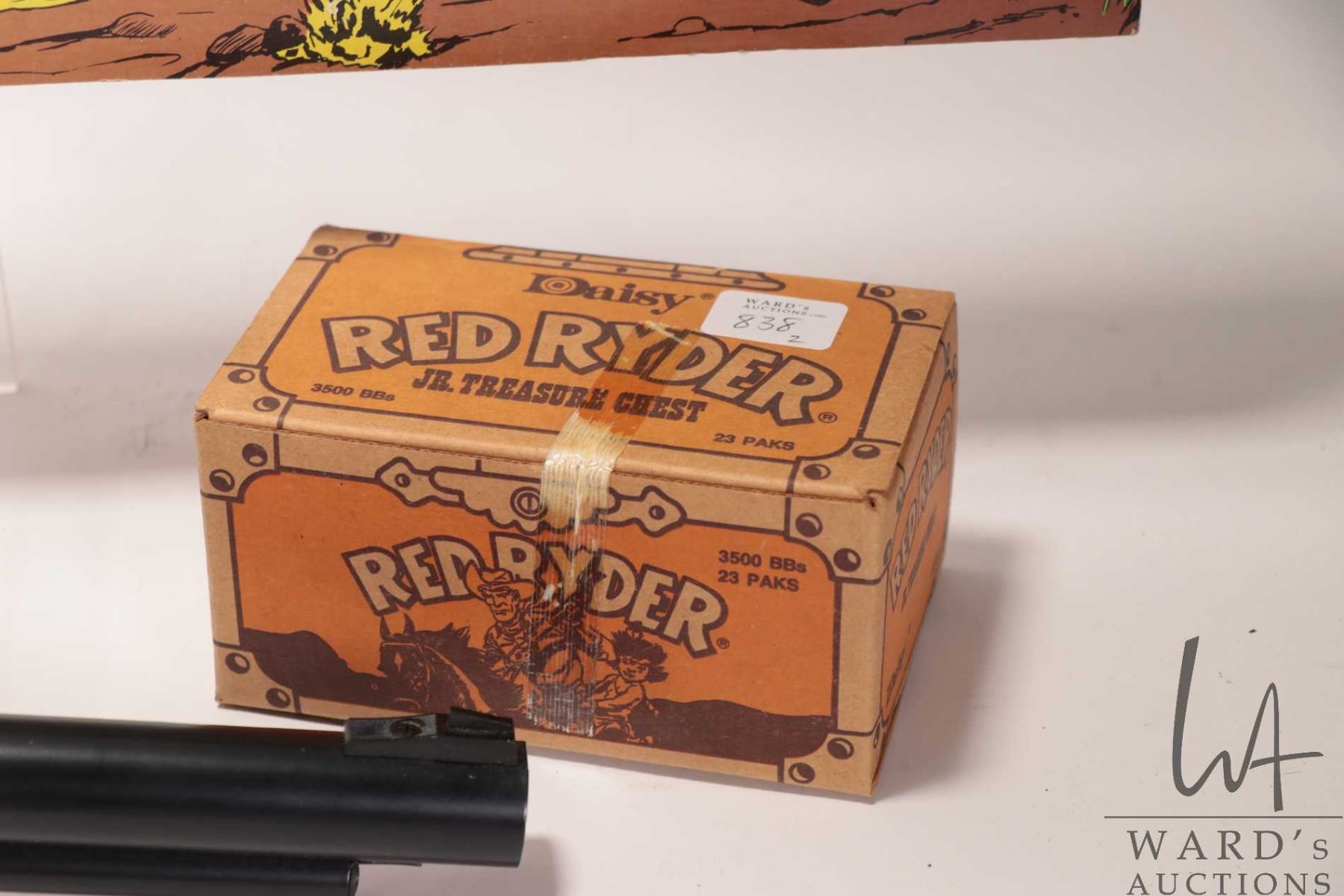 Red Ryder BB gun with original box and manuals, purportedly unfired and condition would support that plus a 3500 count box of brand name BBs, appears full and unopened