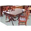 Regency double pedestal dining table with brass capped claw feet and set of four complementing dinin