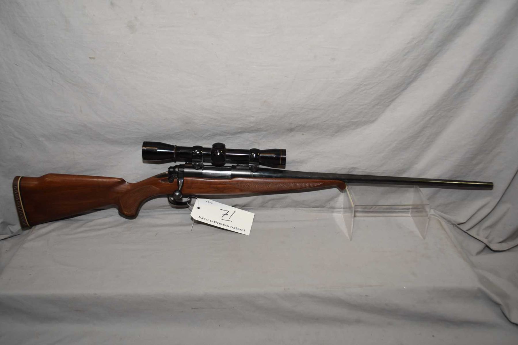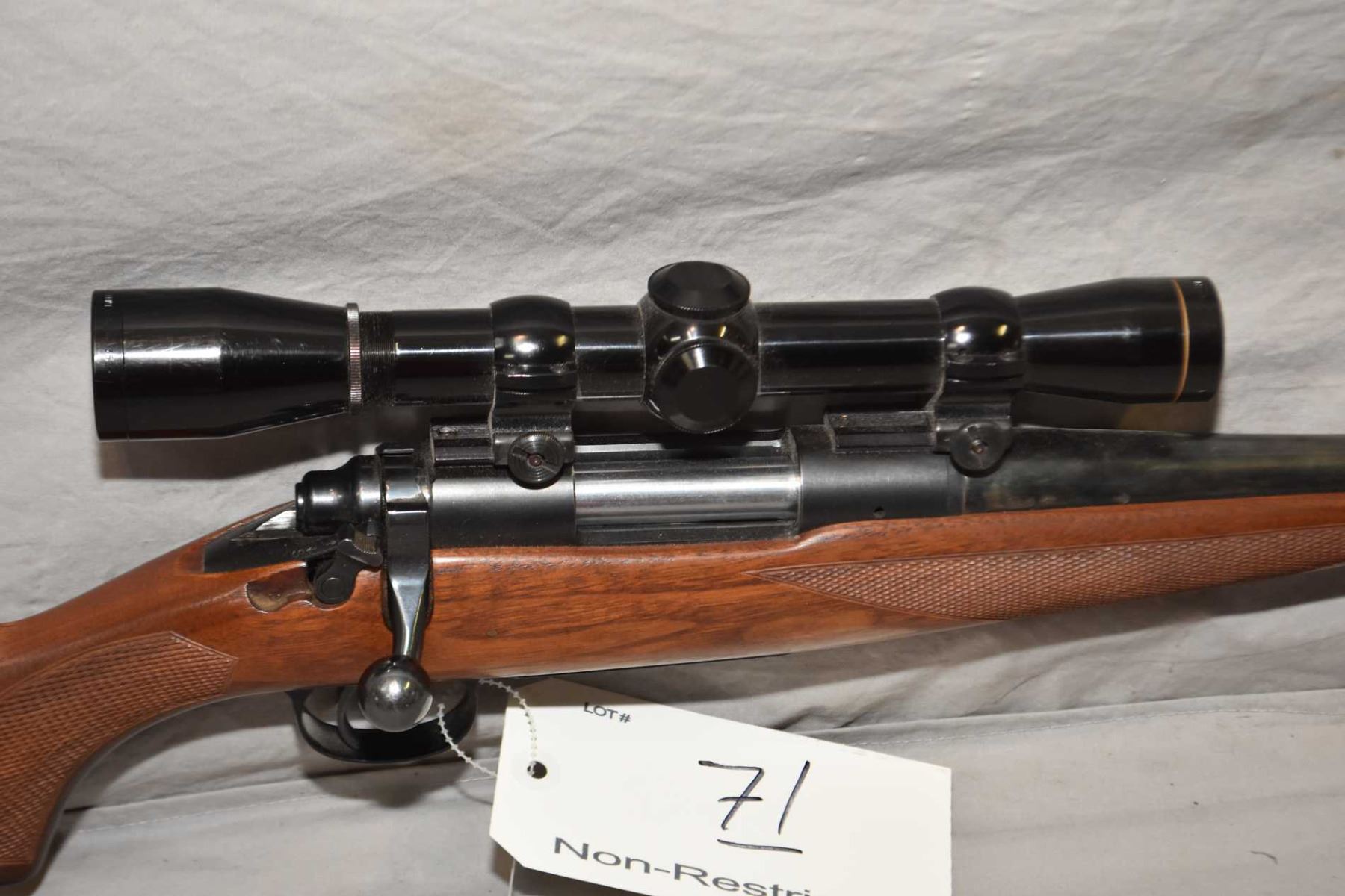 Remington Model 725 6 x 47 MM AP Cal Bolt Action Rifle w/ 22" bbl [ fading blue finish, no sights, but has Leupold M8 - 4X Scope w/ rings and bases, checkered pistol grip stock, with Remington grip cap, Pachmayr recoil pad, few marks to metal, few slight marks to wood ] Ser # 710883