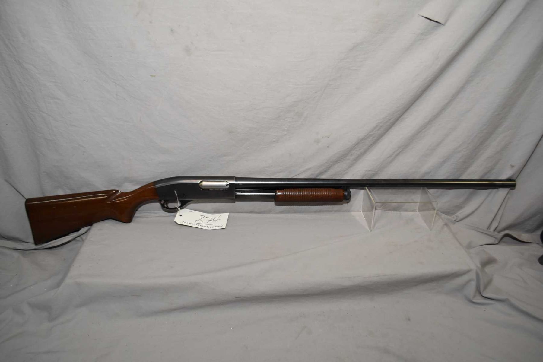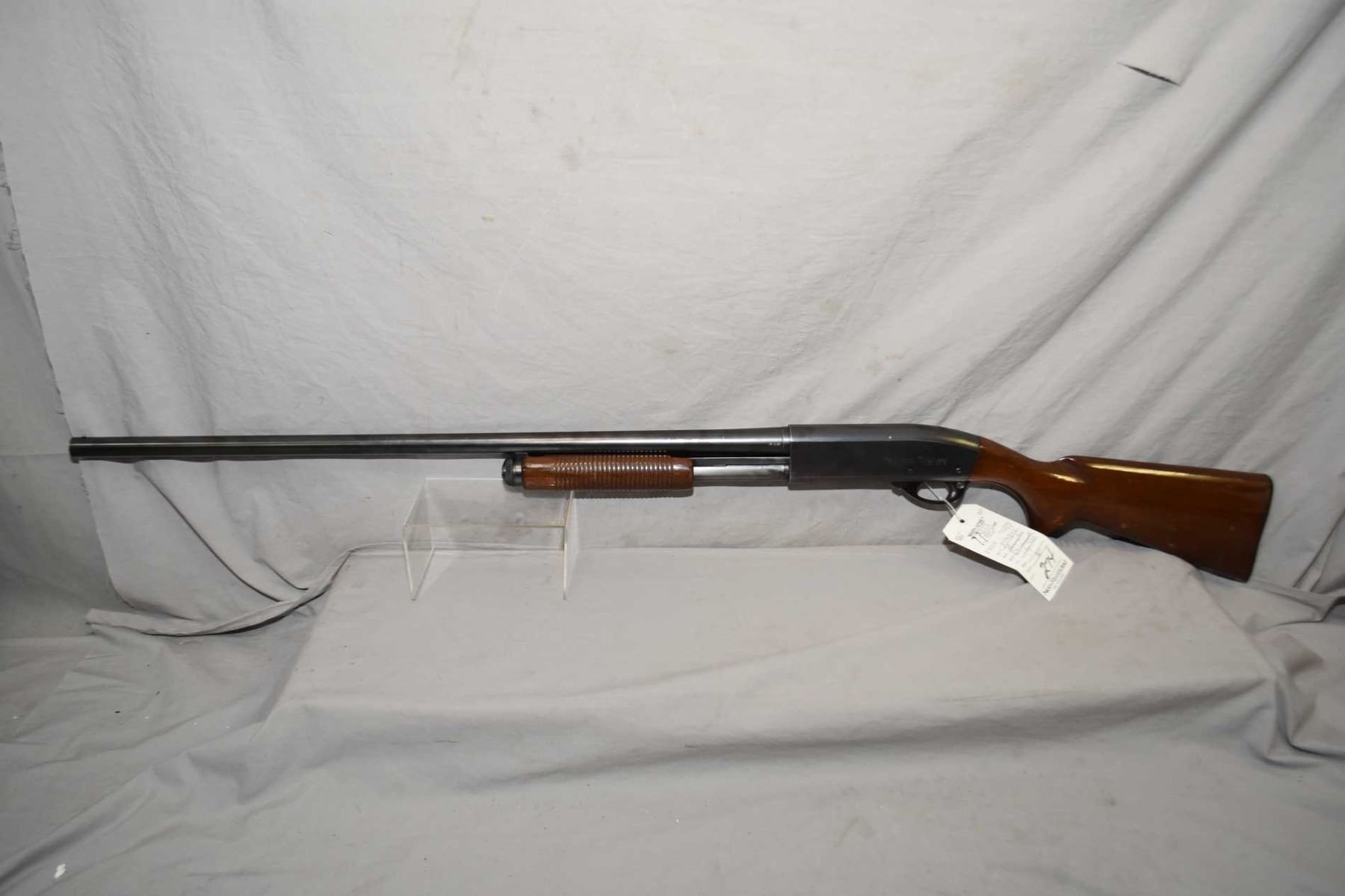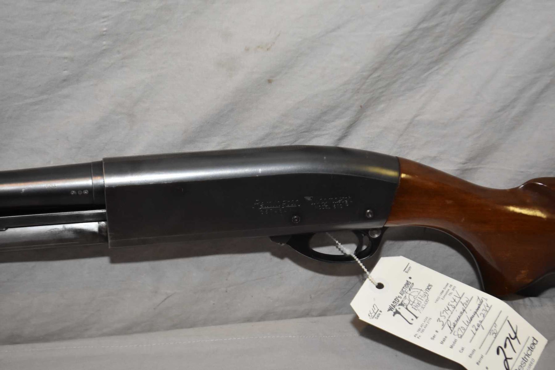 Remington Model 870 Wingmaster .12 Ga 2 3/4" Pump Action Shotgun w/ 30" bbl [ blued finish starting to fade in carry areas, pistol grip stock, with grooved forewood, Remington butt plate, few marks and scratches to wood and metal ] Ser # 357484V