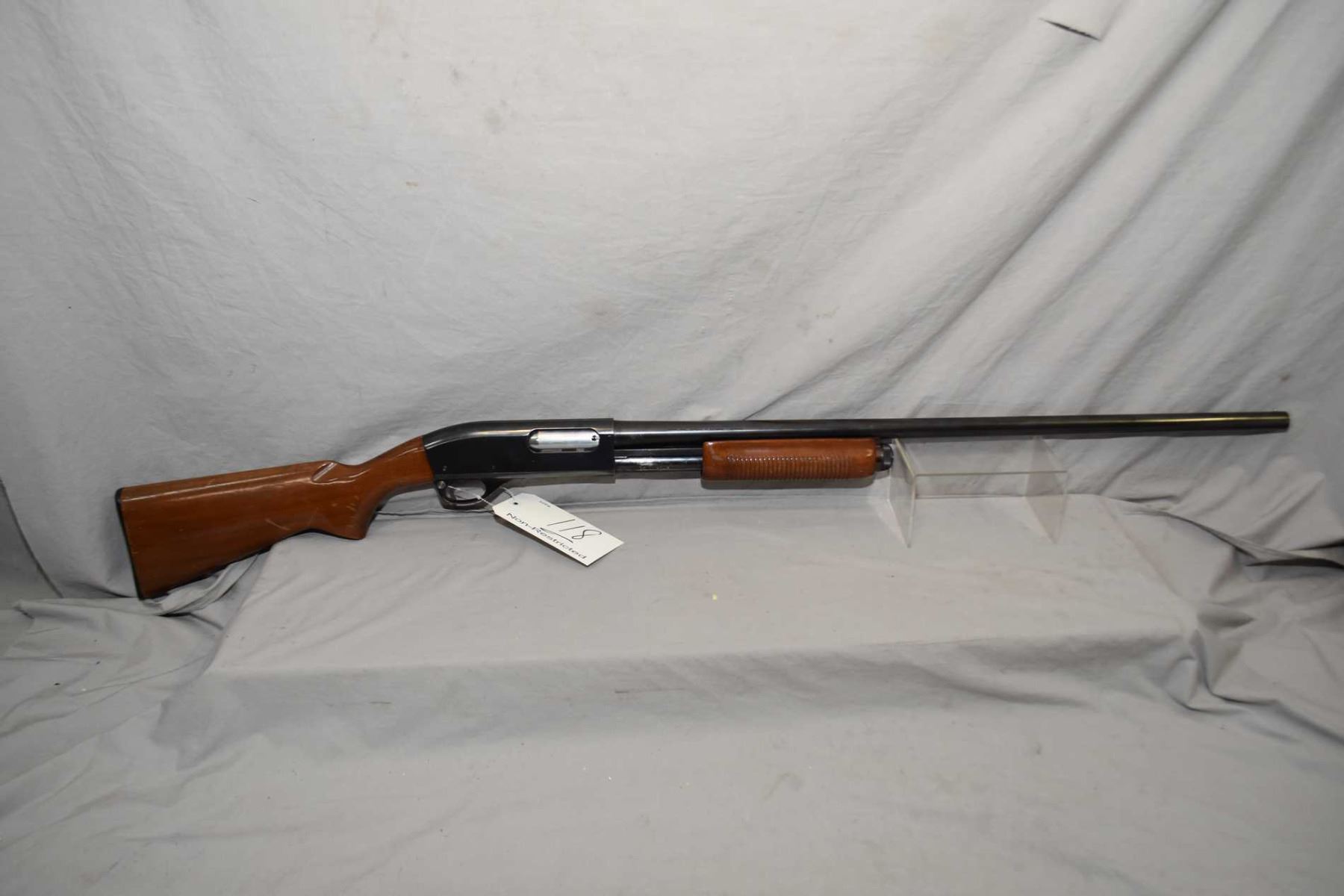 Remington Model 870 Wingmaster .12 Ga 2 3/4" Pump Action Shotgun w/30" full choke bbl [ blued finish, varnished pistol grip stock w/ grooved forend, Remington butt plate, some marks and scratches to wood and metal ] Ser # S737640V