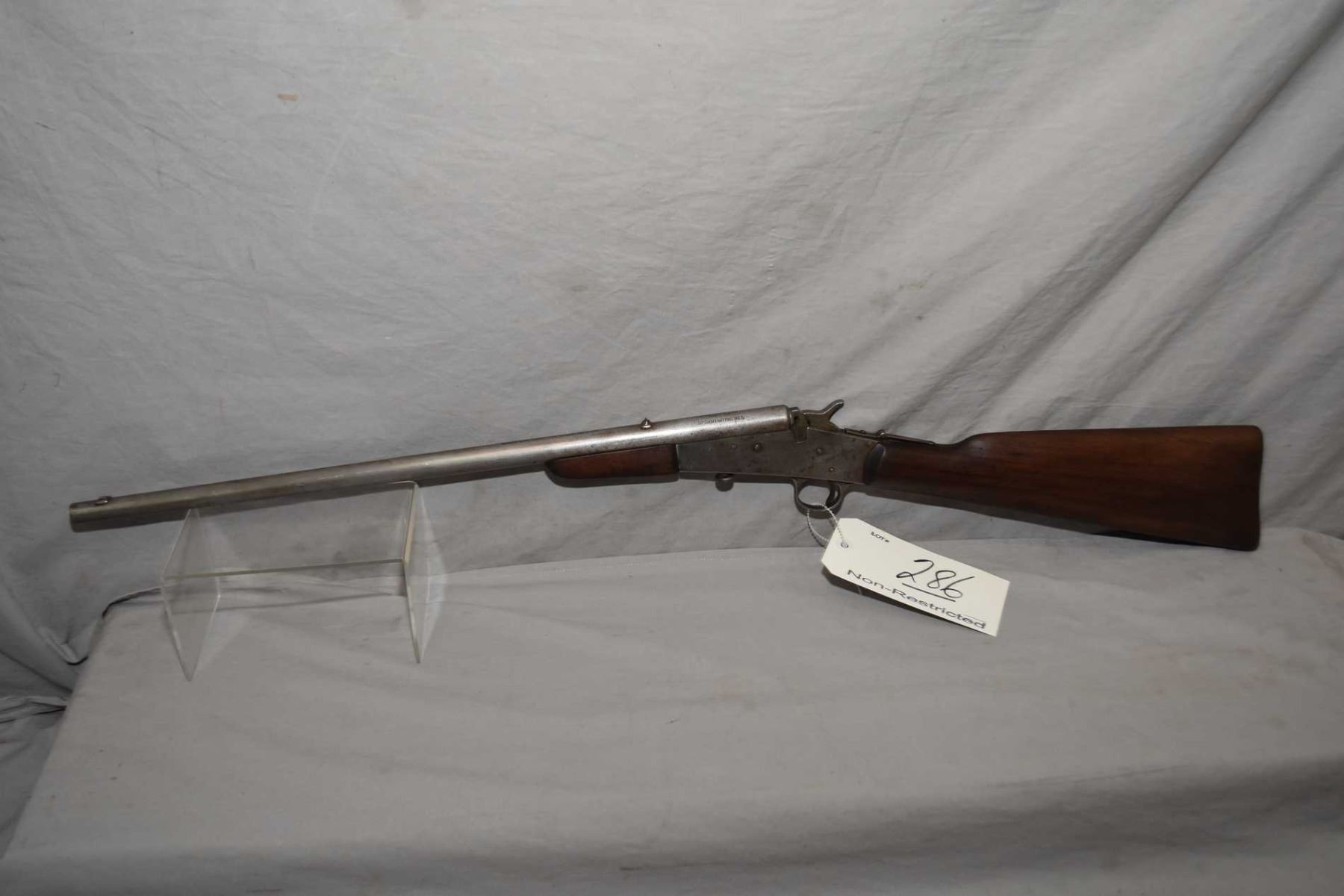 Remington Model No. 6 Rolling Block .32 Rimfire Short & Long Cal Single Shot Rifle w/ 20" bbl [ blued finish faded to grey in most areas, barrel sights, and tang peep sight, fair wooden stock and forend, few marks and scratches to wood and metal, missing the butt plate and screws ] Ser # S210187