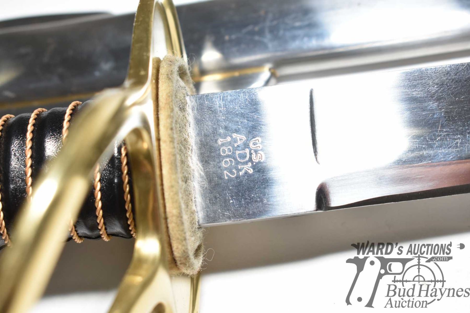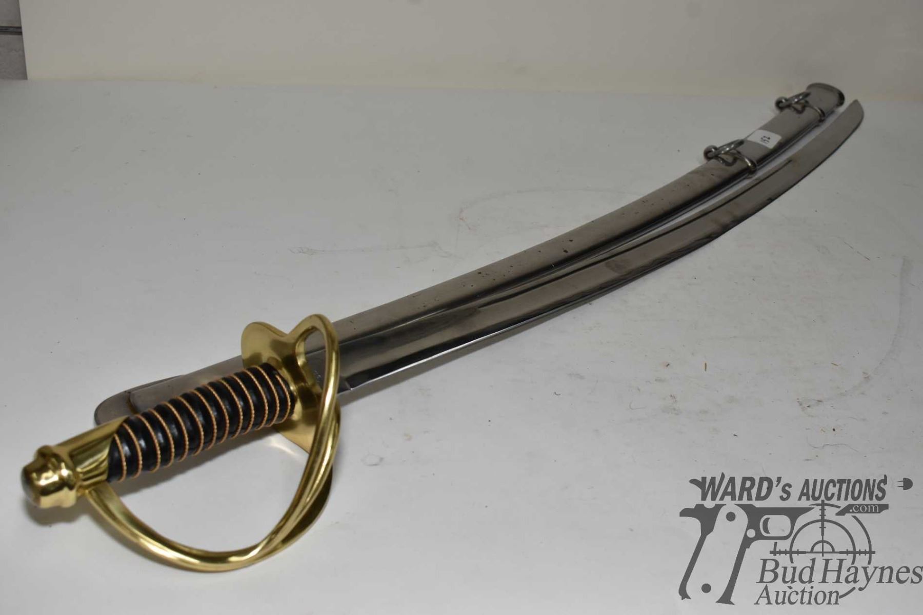 Reproduction Ames Model 1862 cavalry saber and metal scabbard w/ 34  blade, brass hilt and wrapped h