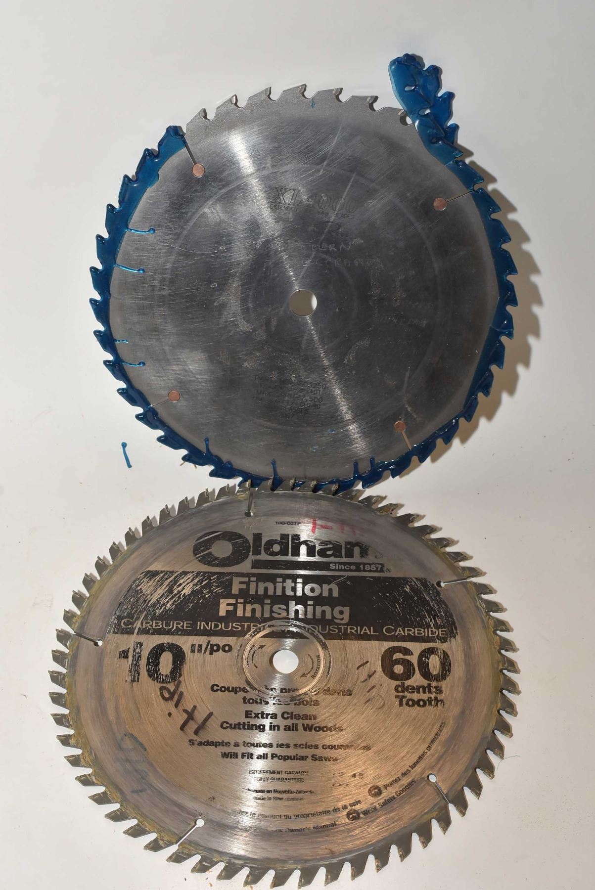 Resharpened F.S. Tool XL 4000, 70 tooth 10" circular saw blade and a used 60 tooth 10" circular saw blade