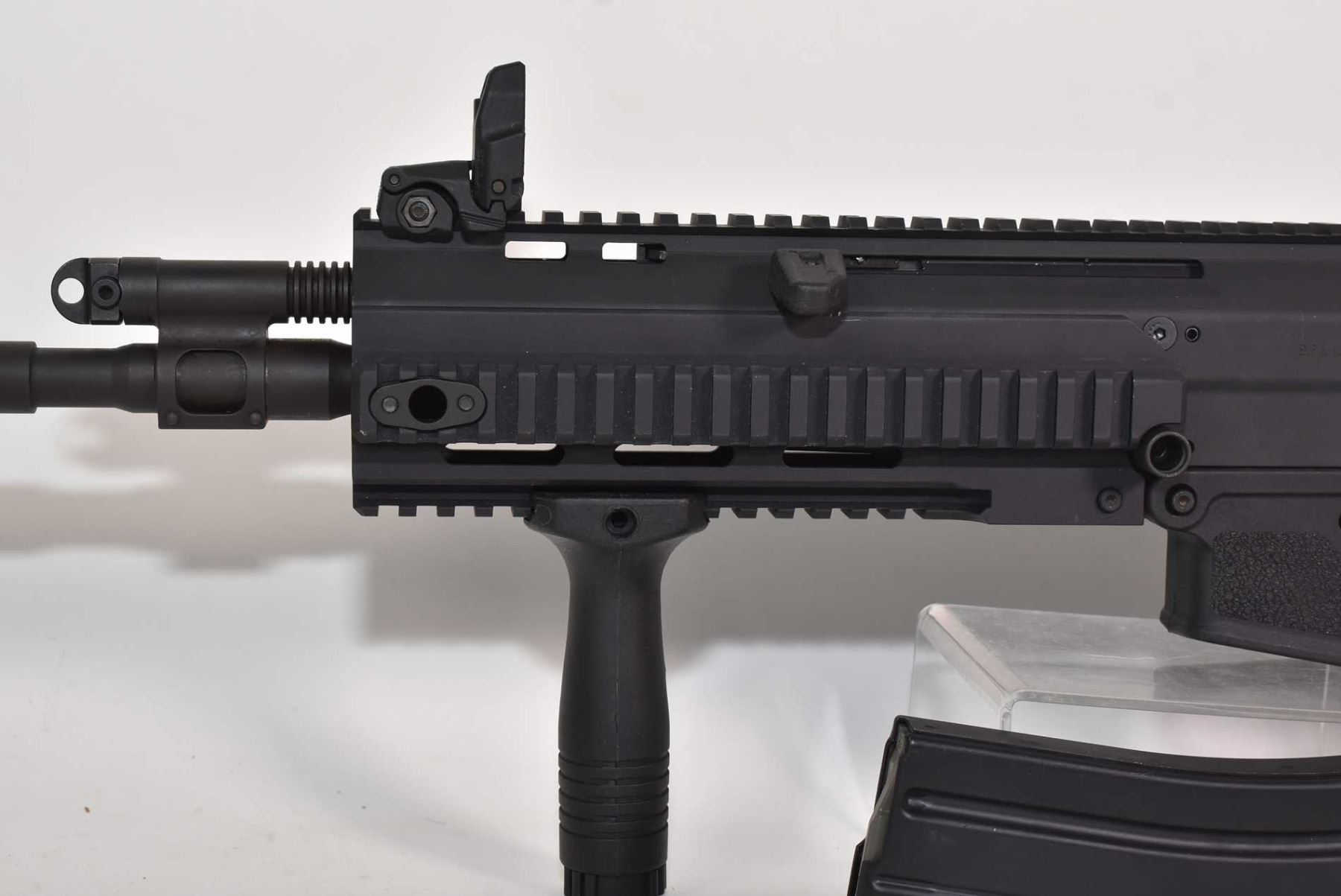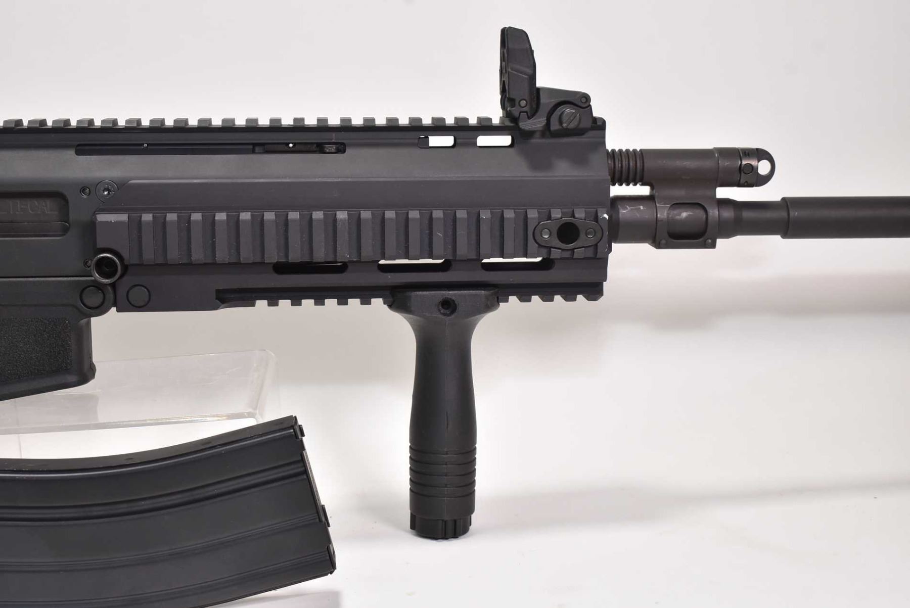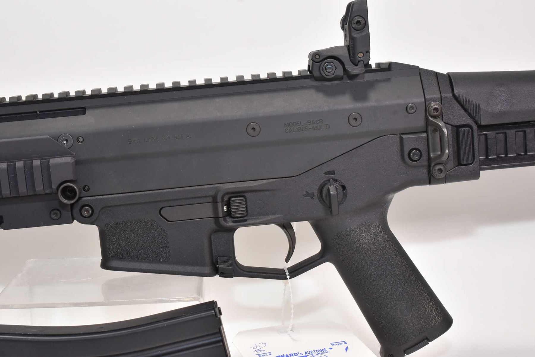 Restricted rifle Bushmaster model BACR, .223 Rem five shot semi automatic, w/ bbl length 419mm [Parkerized style finish, full flat top fitted with Magpull adjustable front and rear sights, stock is both folding and adjustable. Fitted with weakhand pistol grip, includes one 30 round pinned to 5 magazine. Appears to have had virtually no use with only minor handling marks] serial # ACRC 001655, certificate # 17279149, FRT # 133580-1 PAL required