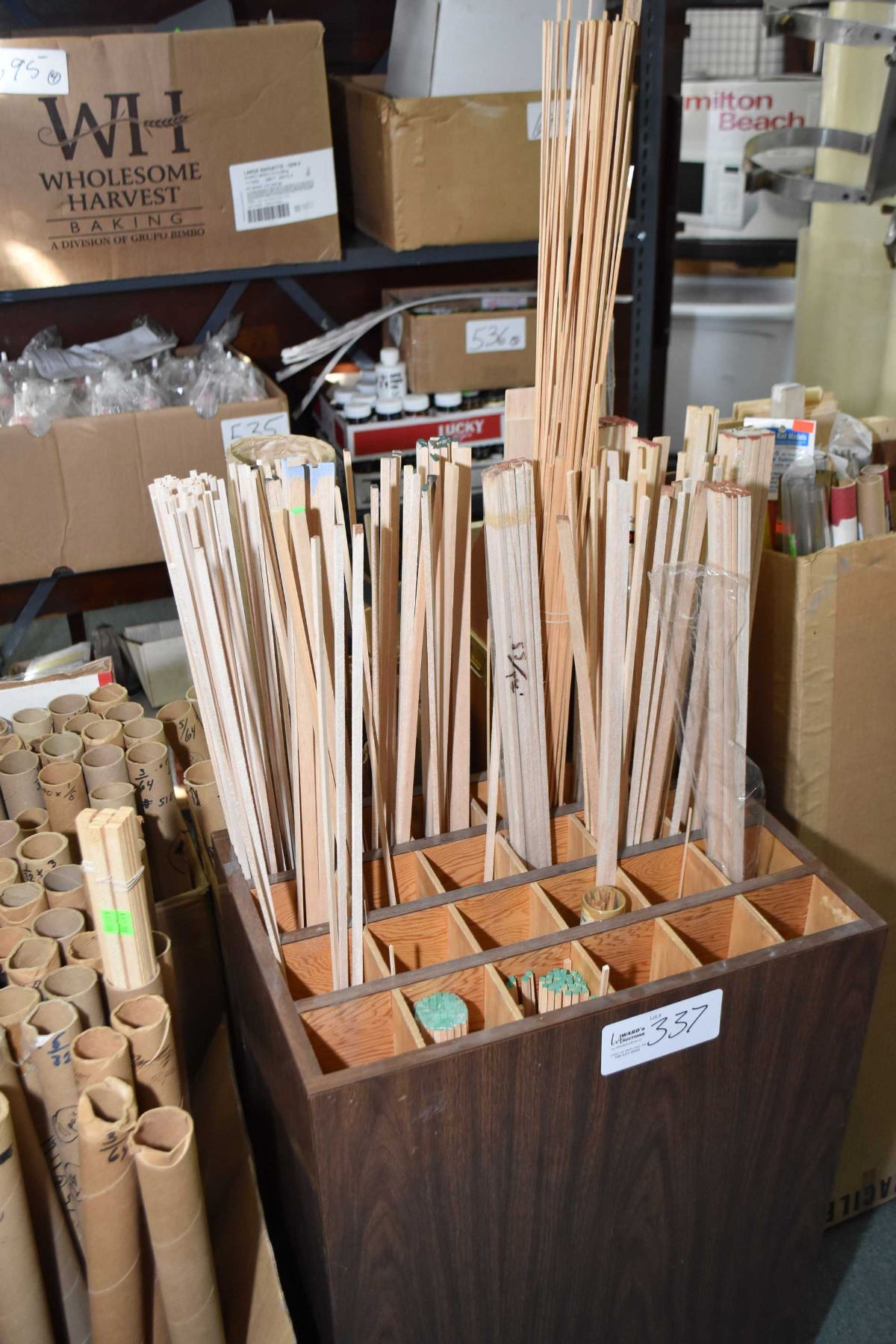 Retail display containing large selection of balsa craft stock source material in various shapes