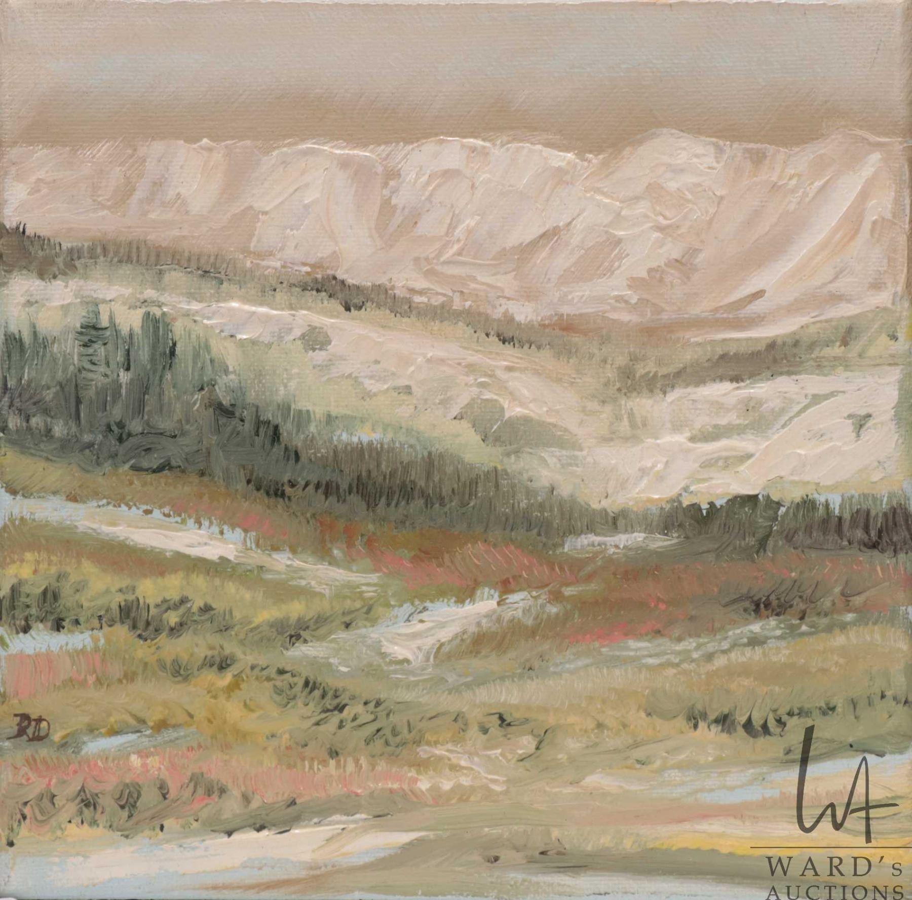 Richard Dixon framed acrylic on canvas painting of a wintry hillside, initialed by artist, 7" X 7"