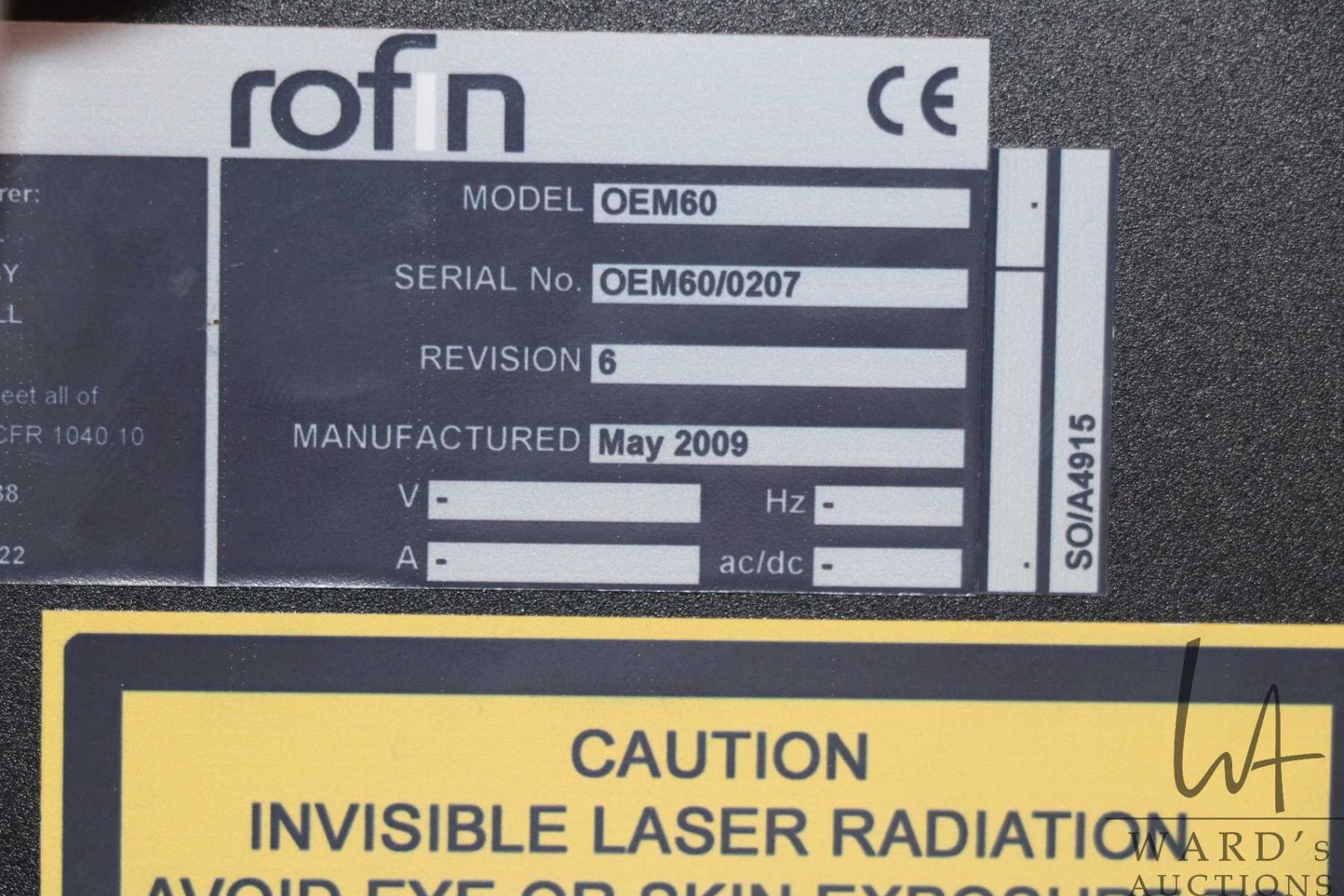 Rofin model OEM60 laser. Serial number OEM60/0207. This unit purportedly fits lot number 101 and and
