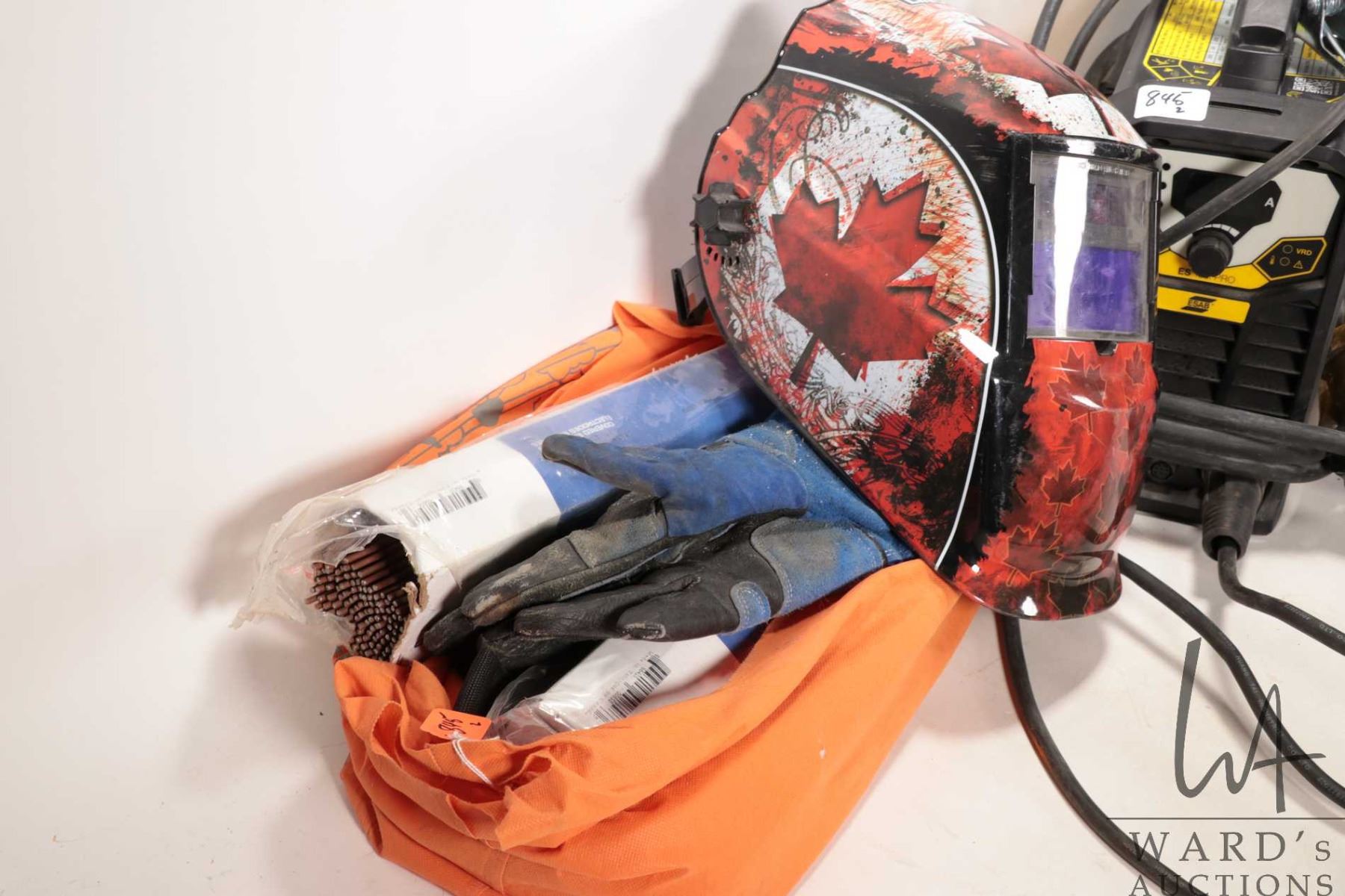 Rogue ES 1301 Pro welder with helmet, gloves and selection of welding rods, not tested