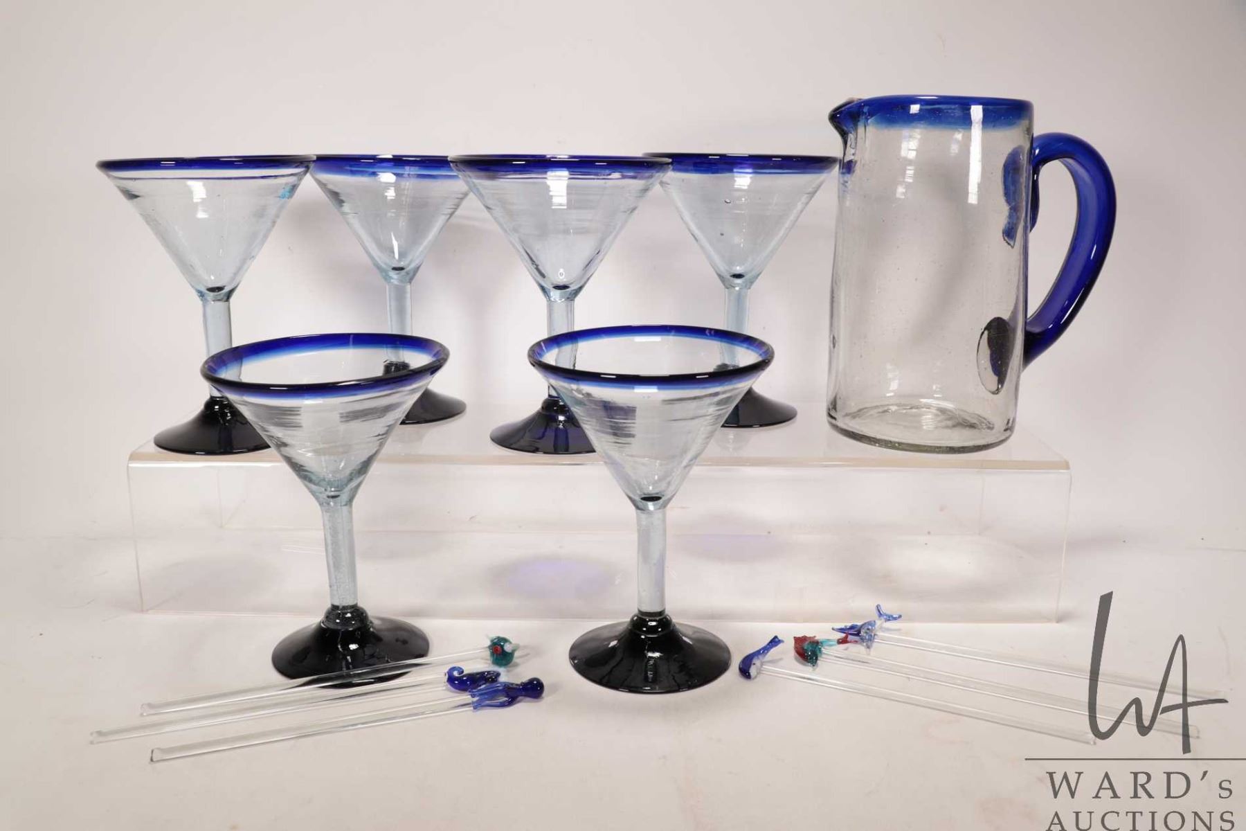 Roselift Height Dos Suenos Mexico glassware including 6 7" high margarita glasses, handled pitcher and 6 glass stir sticks. Note: Not available for shipping. Local pickup only