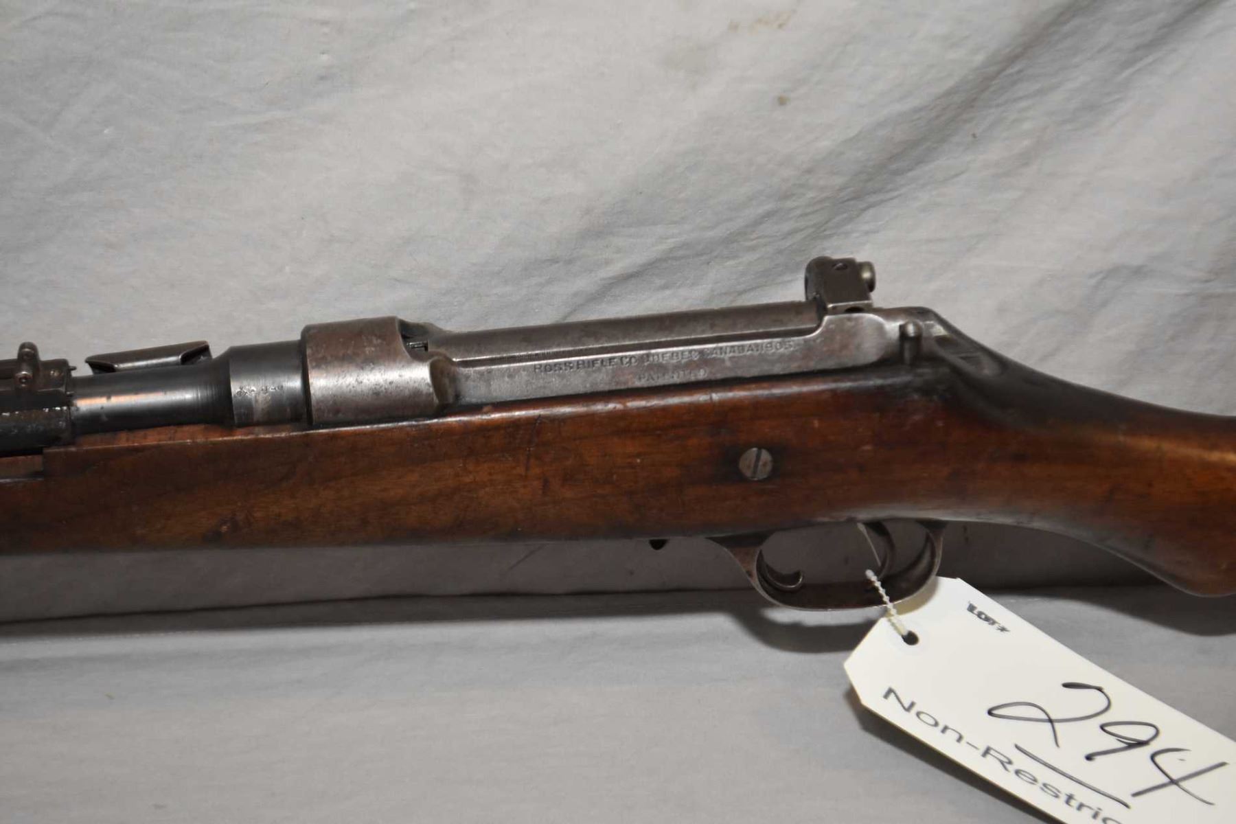 Ross Model 1905 Mark II .303 Brit Cal Sporterized Bolt Action Rifle w/ 28" bbl [ patchy fading blue finish, missing part of the back sight, various marks on stock, including Mark II Dated 1909, various marks and scratches to wood and metal ] Ser # Nil
