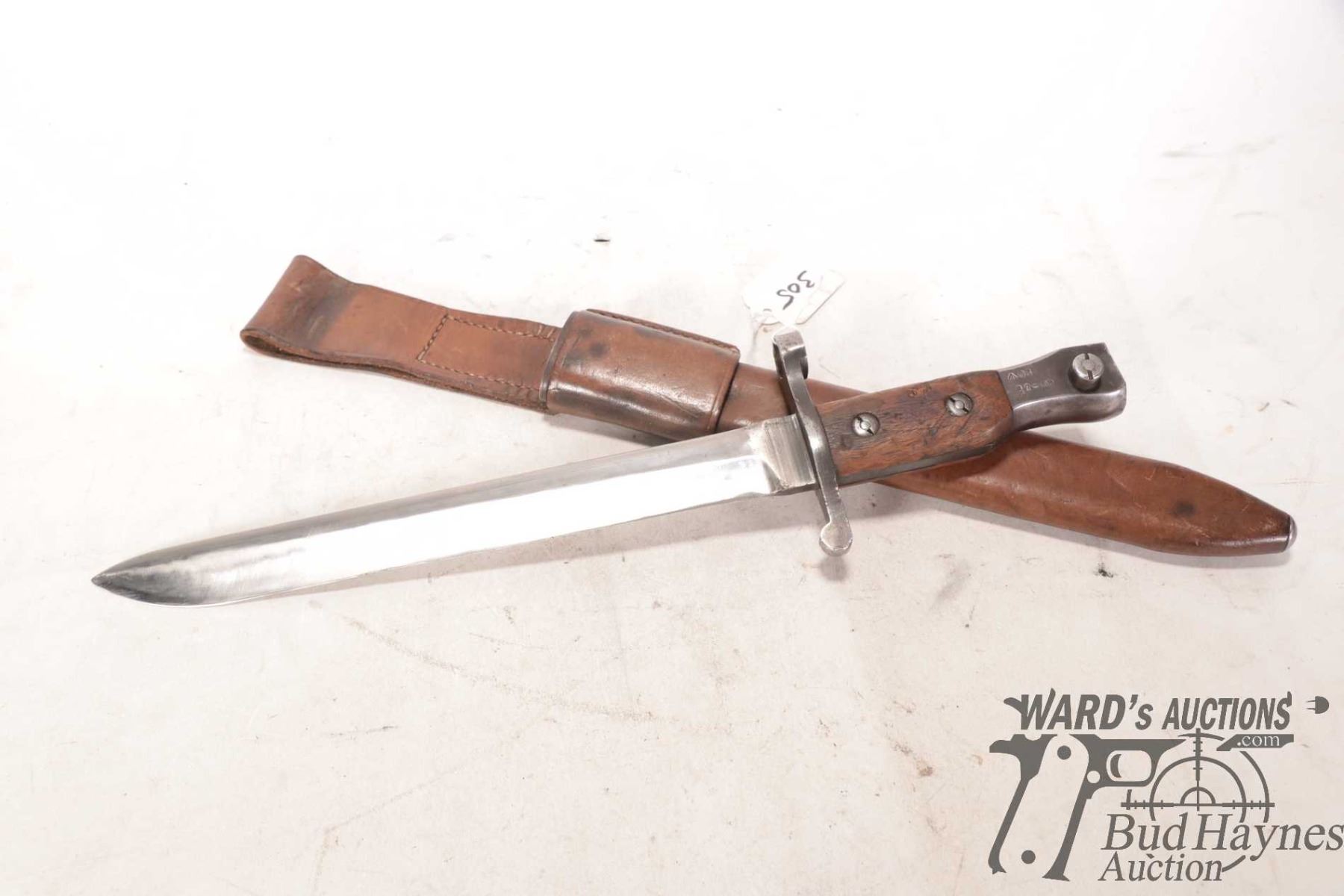 Ross rifle bayonet w/ leather scabbard Ross rifle bayonet w/ leather scabbard