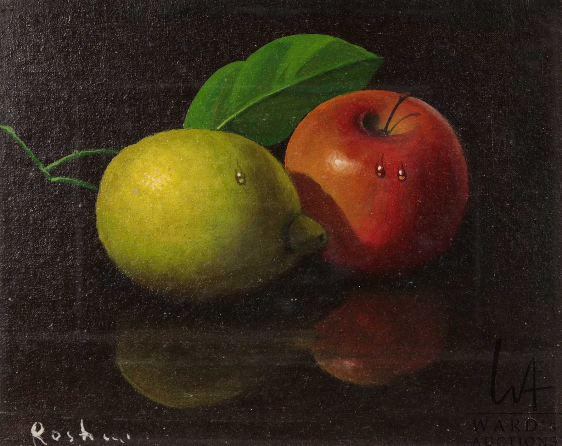 Rostam (?), framed oil on canvas still-life fruit, 8" X 9 1/2"