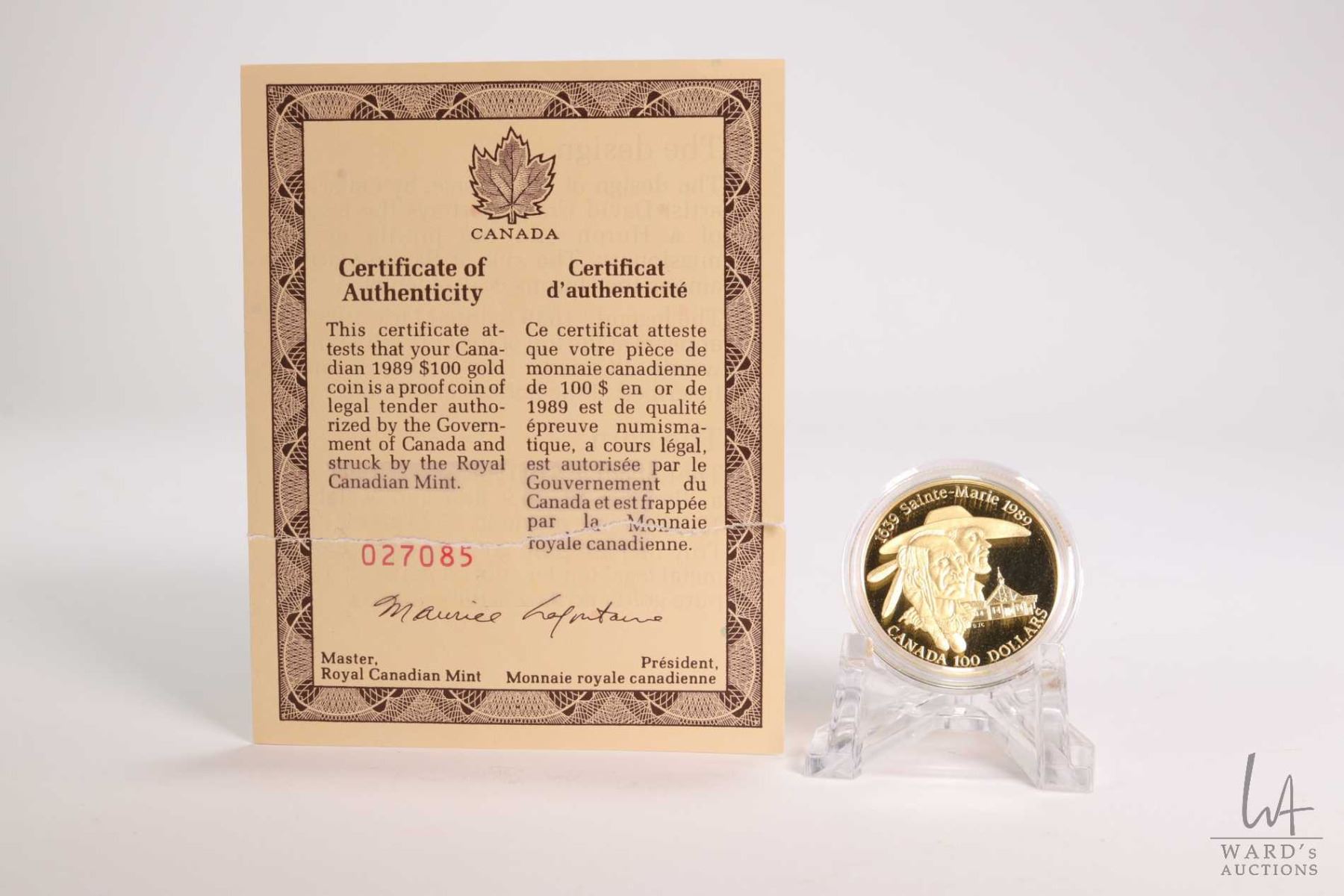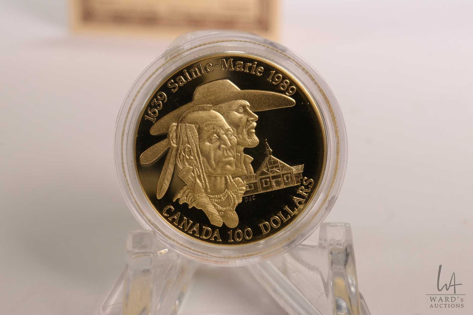 Royal Canadian MInt 1989 Canadian $100.00, 14 karat 13. 338 gram gold "1659 Sainte-Marie 1989" coin, 27,085/?????