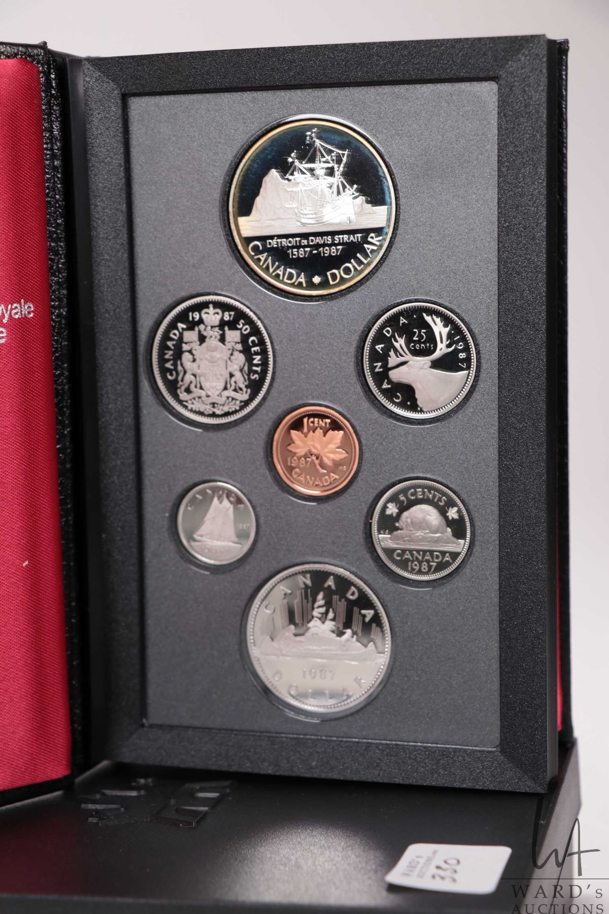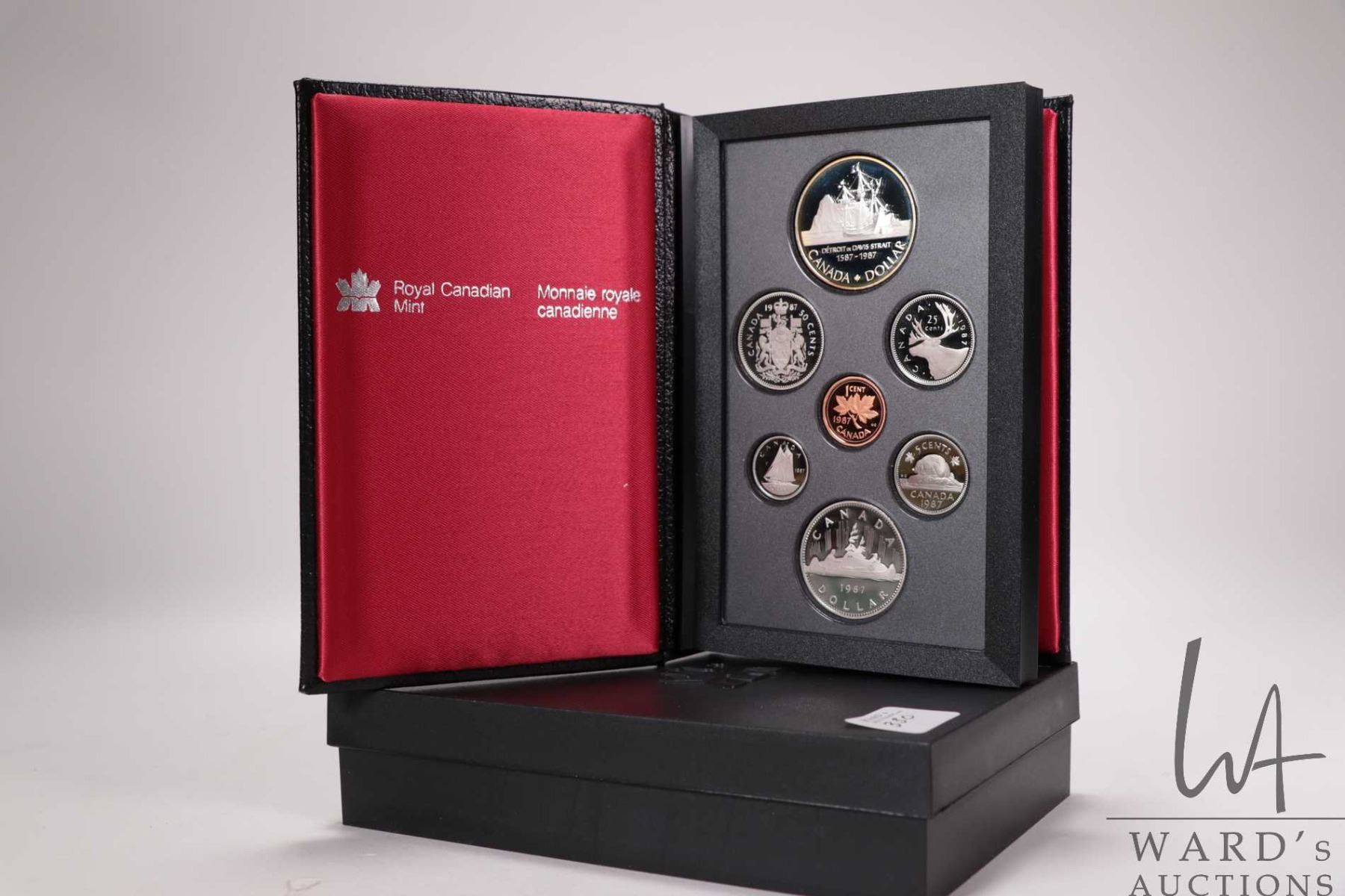 Royal Canadian Mint 1987 double dollar/ double struck proof set with both silver and nickel dollars including John Davis Exploration/ Davis Strait 400th Anniversary silver dollar