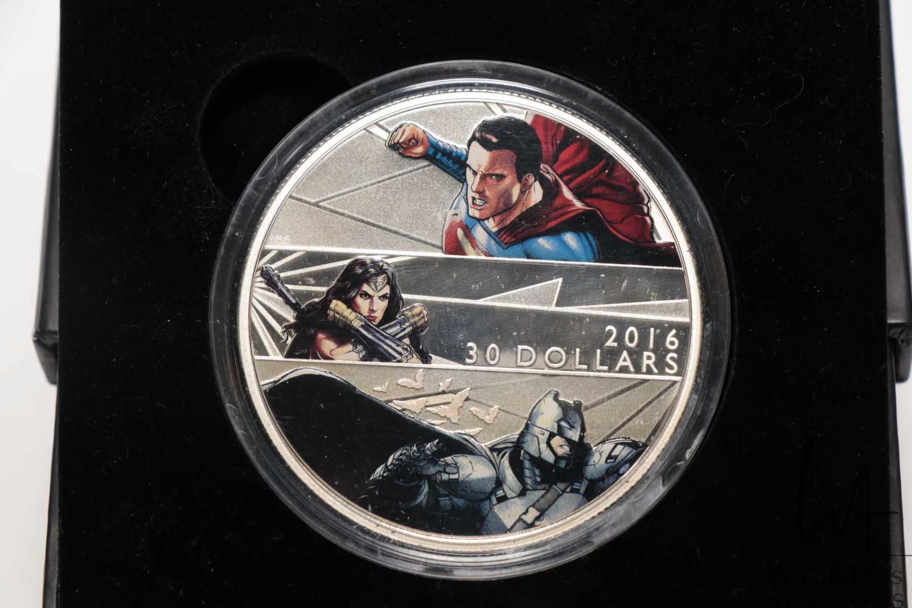 Royal Canadian Mint 2016 $30 Superman vs Batman coin and a paperback book titled  The Making of Supe