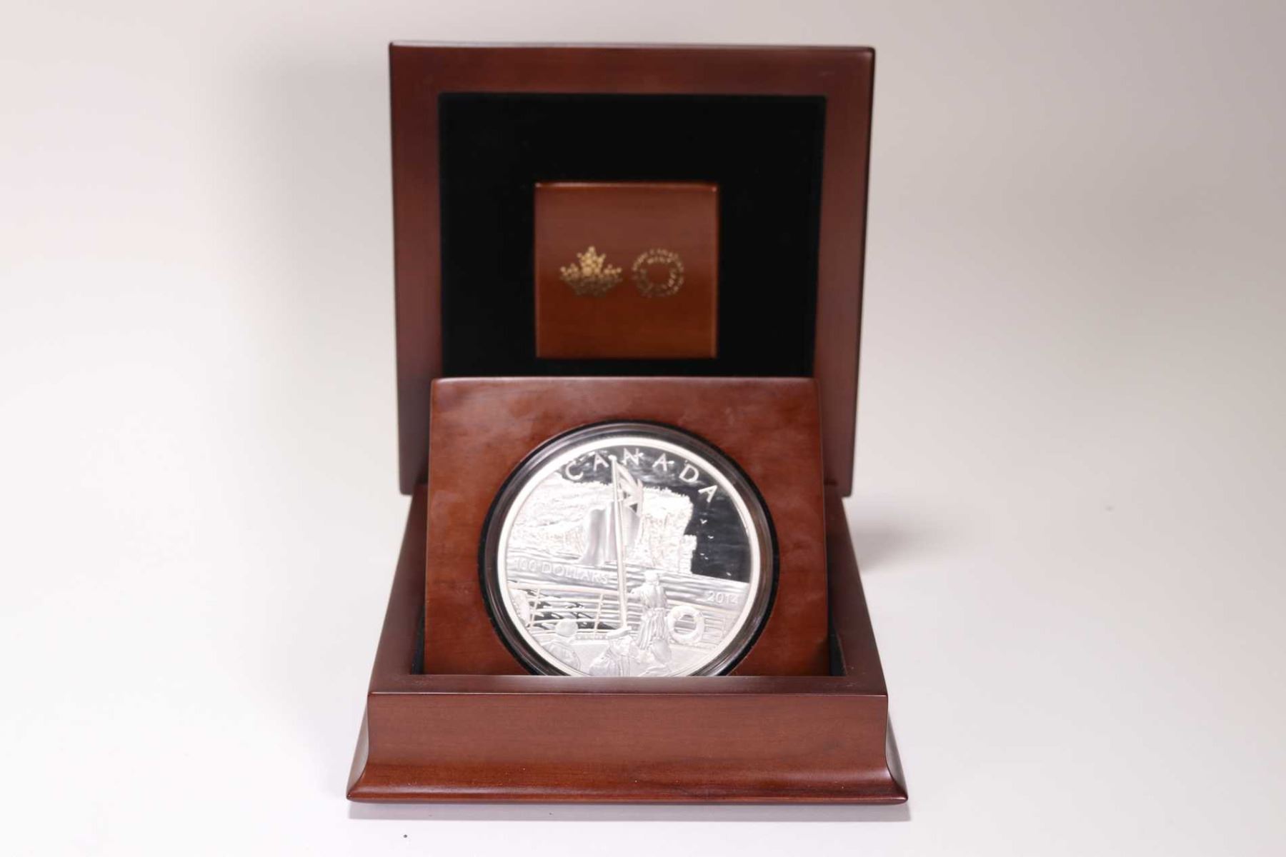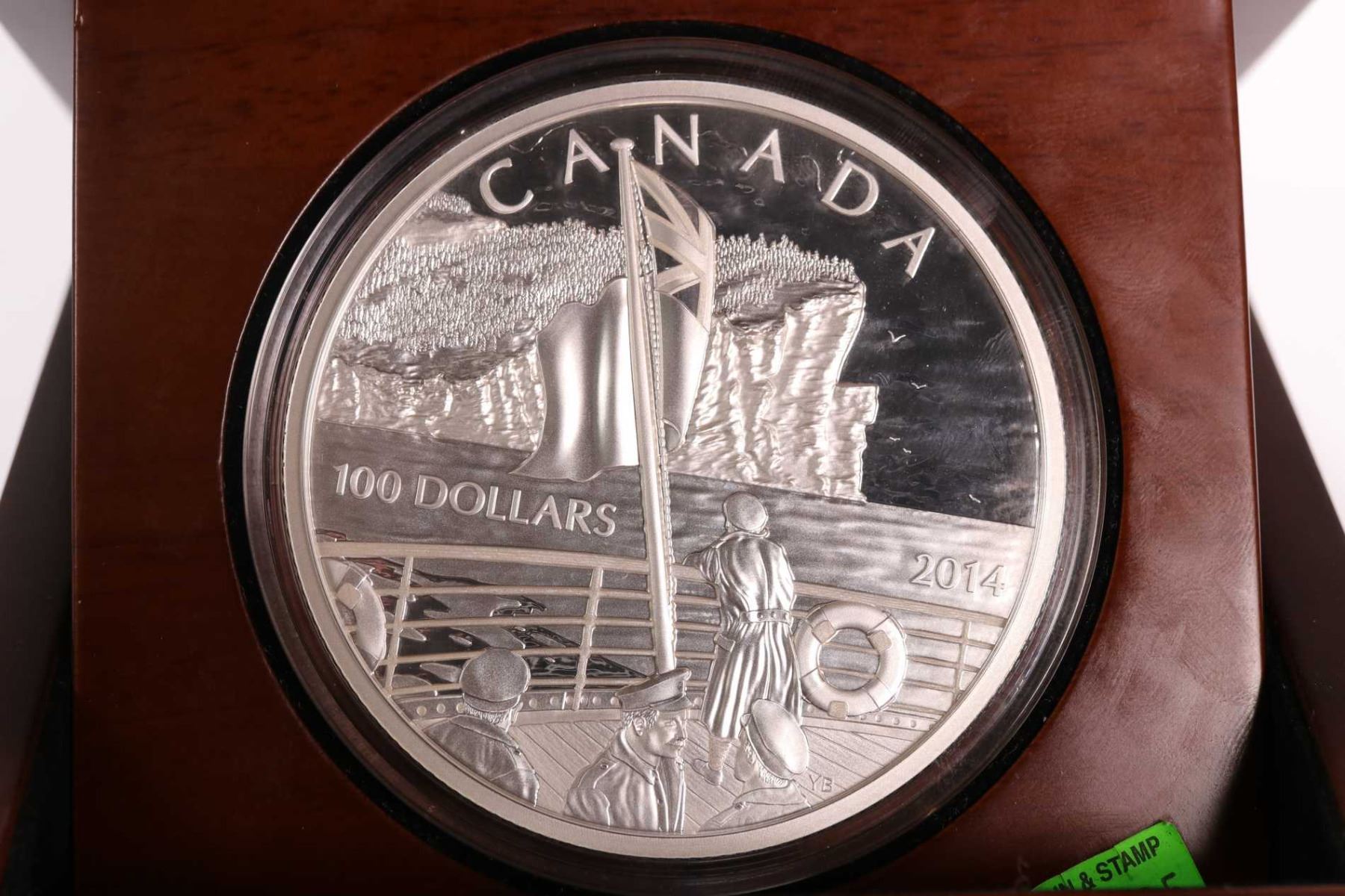 Royal Canadian Mint wood cased collector 2014, $100 Anniversary of the Declaration of the First World War" coin made of 311.5 grams of 99.99% pure silver. Originally retailed $899.95 CAD