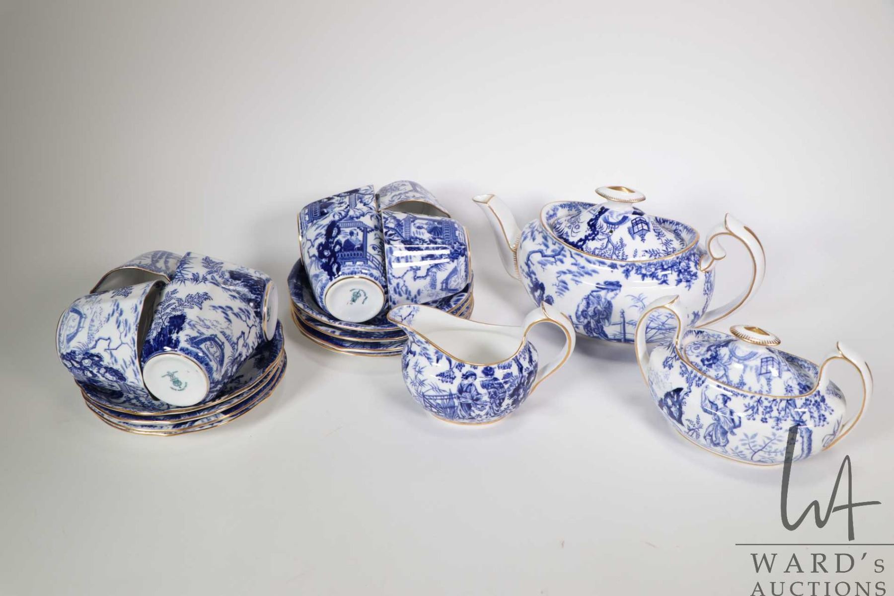 Royal Crown Derby "Mikado" bone china tea service including tea pot, cream, lidded sugar and eight small cups and saucers. Note: Not available for shipping. Local pickup only
