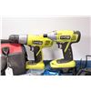 Ryobi rechargeable drill and impact gun, both working at time of cataloguing, includes one battery a