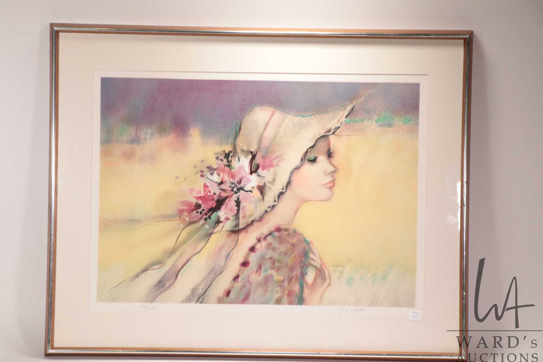 Sachiko Imai limited edition lithograph, titled " Femme de l' EtÚ, pencil signed by artist 84/125. Overall dimensions including frame 27" X 34" includes COA. Note: This is too large to ship. Local pickup only