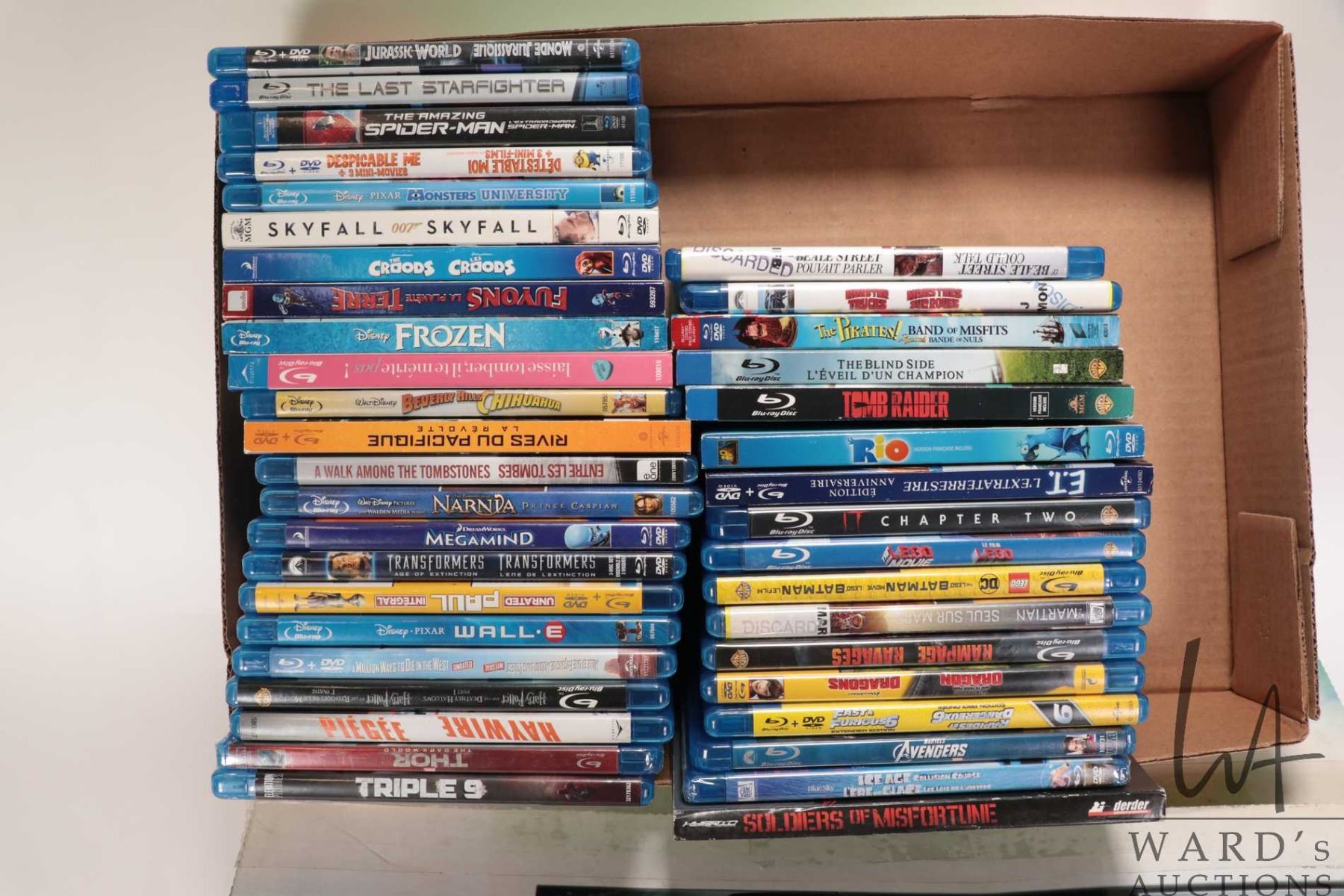 Samsung Blu-ray Disc/DVD player with remote, appears to work, not confirmed. Includes forty blu-ray discs, assorted movies etc.