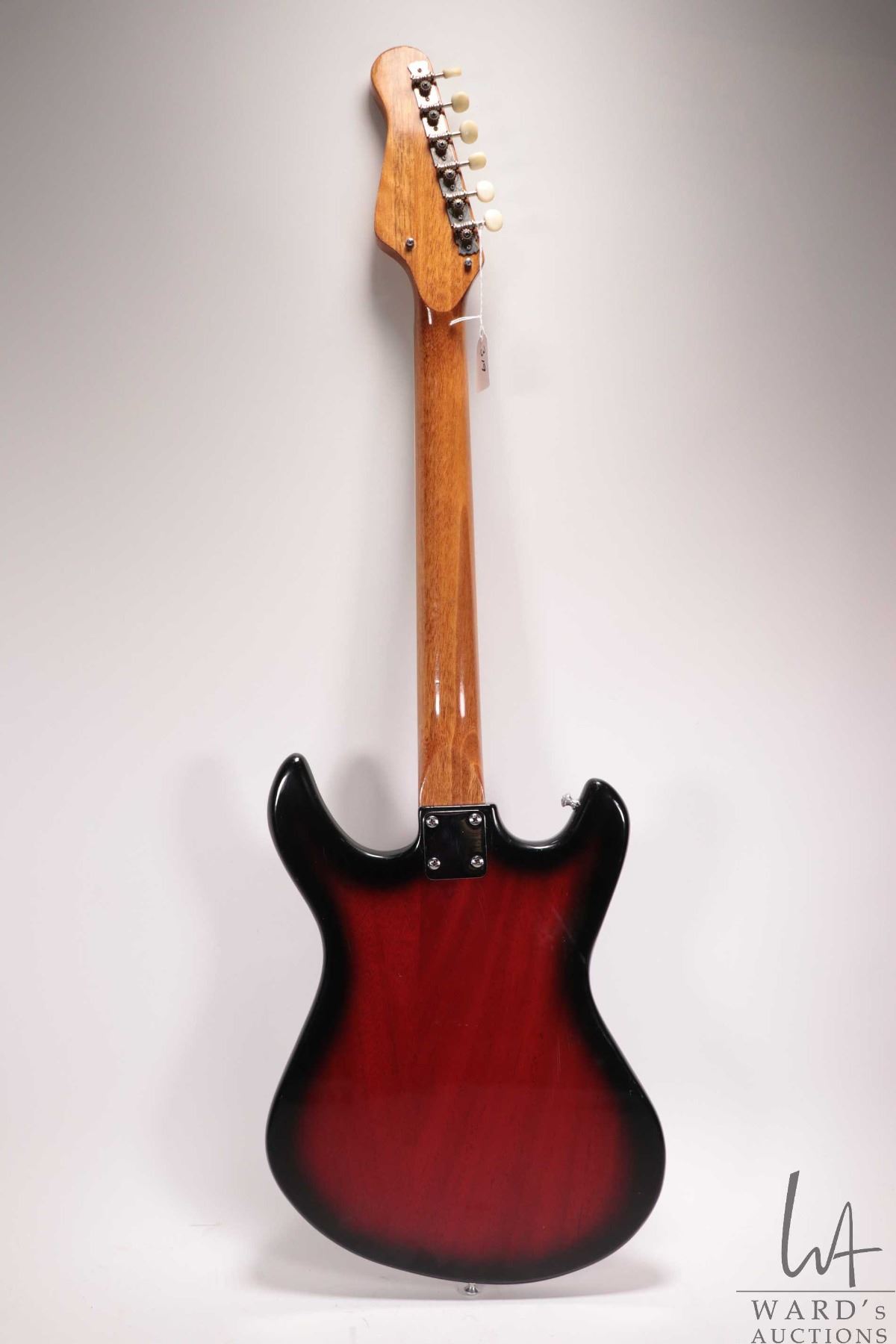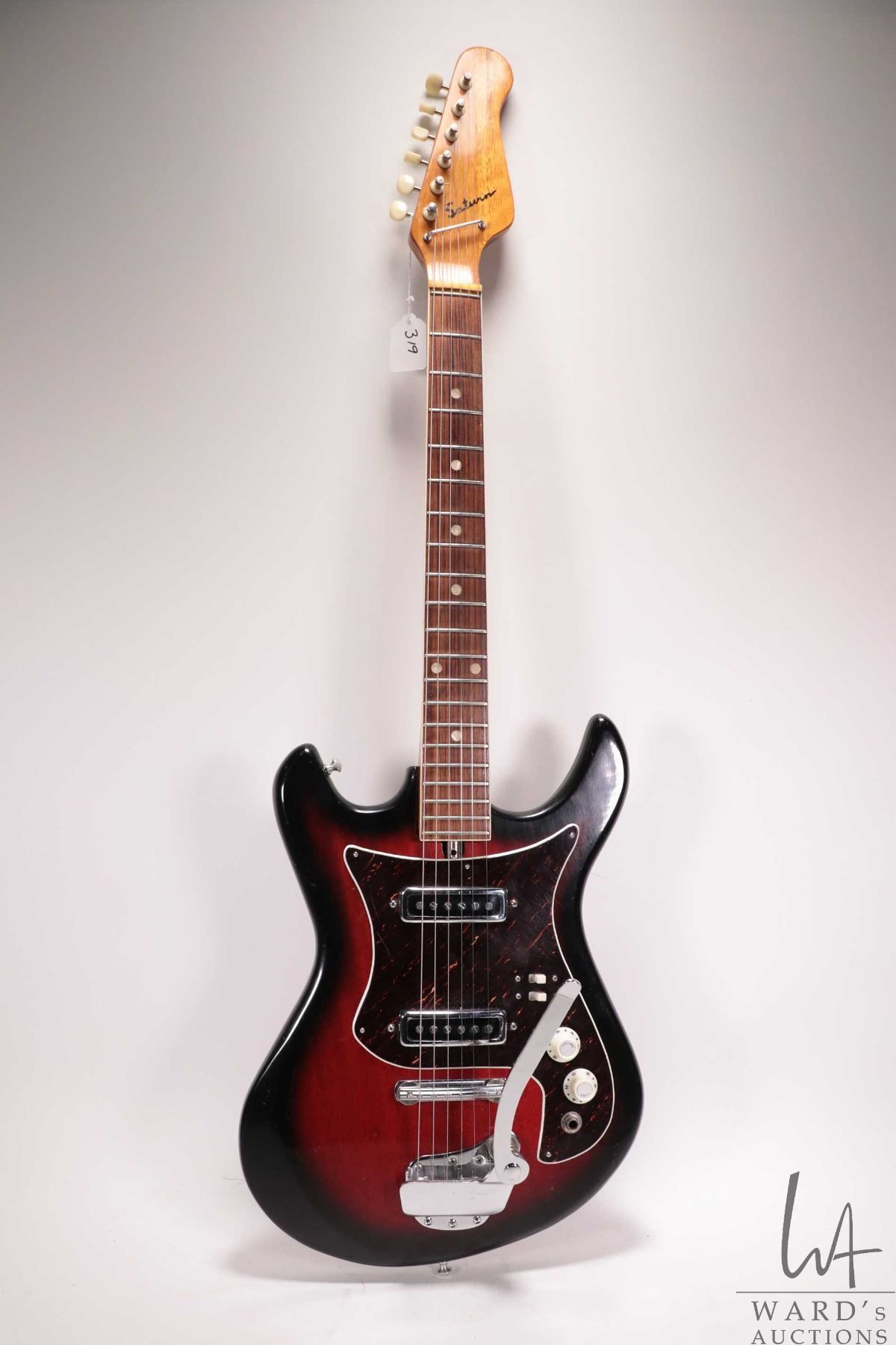 Saturn 1960 guitar. Made in Japan. Sprung tembolo arm, Sunburst with double PAF pickups and ivory tuners