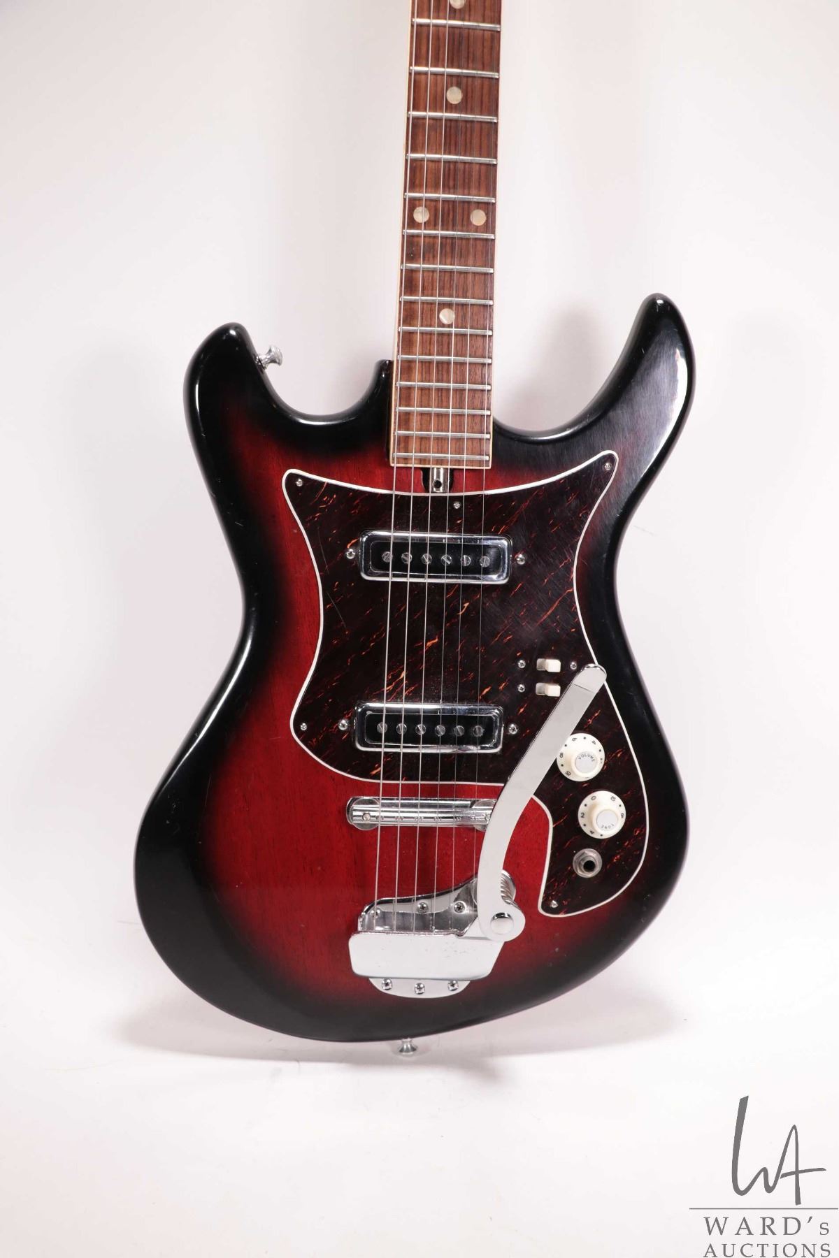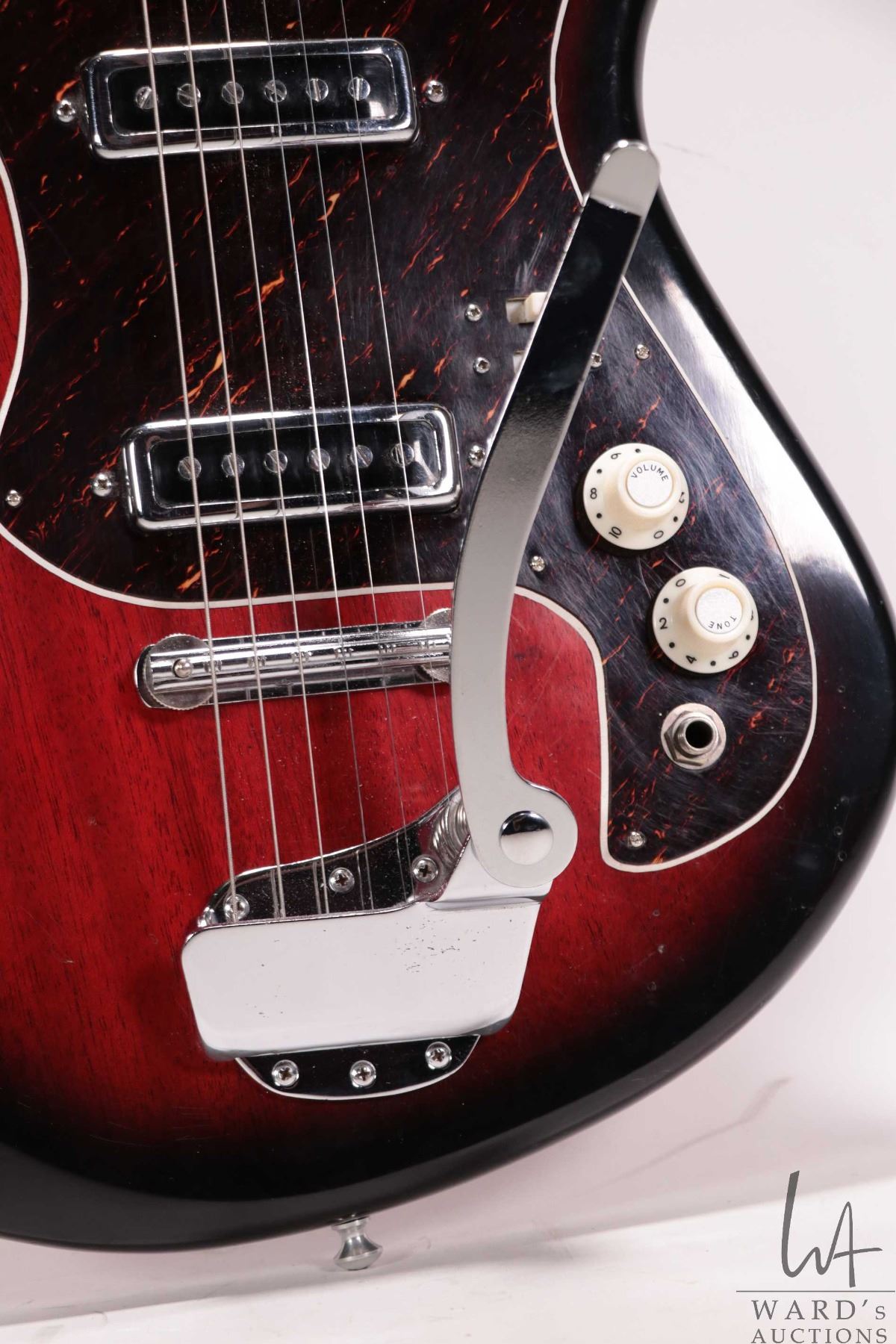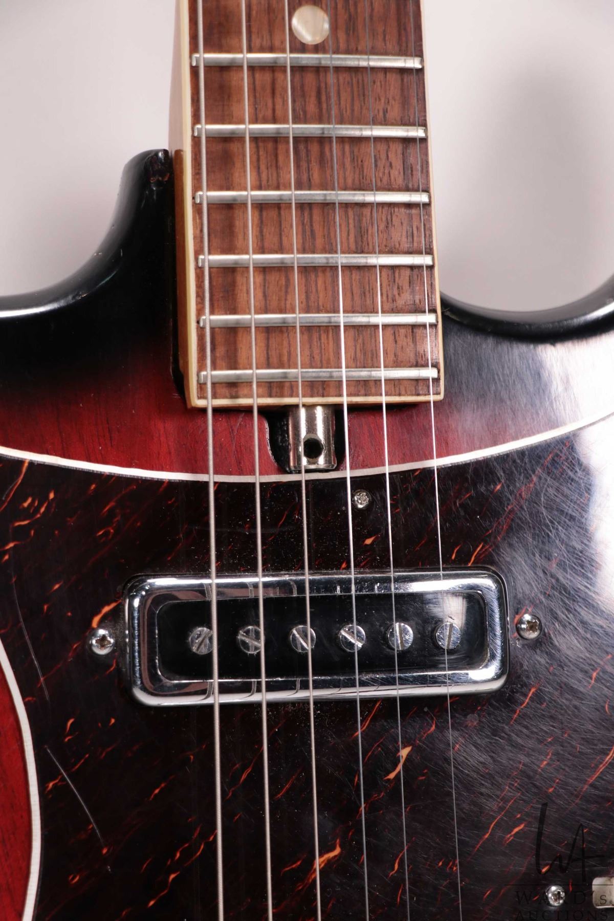 Saturn 1960 guitar. Made in Japan. Sprung tembolo arm, Sunburst with double PAF pickups and ivory tu