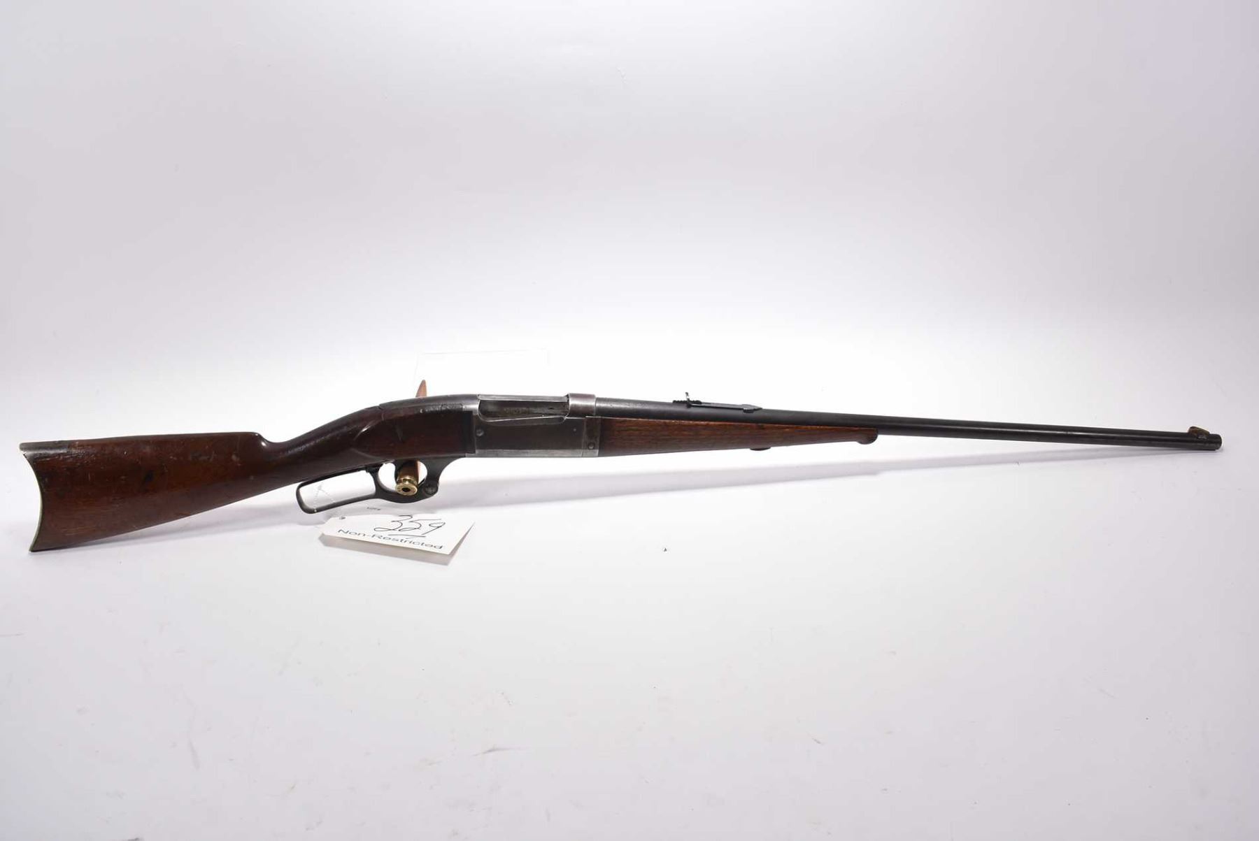 Savage Model 1899 Take Down .303 Sav ONLY Cal Lever Action Rifle w/ 26" rnd bbl [ lacquered wood, with overspray on metal , forend has small chip near tip, butt stock is chipped and cracked behind upper and lower tangs, metal crescent butt plate, various marks and scratches to wood and metal ] Ser # 145007