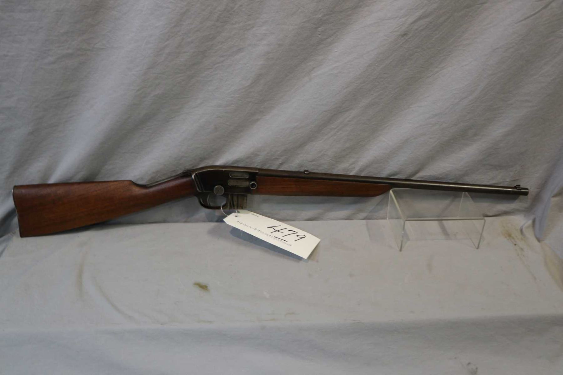 Savage Model 1912 .22 LR Automatic Cal Mag Fed Semi Auto Rifle w/ 20" bbl [ fading blue finish, turning brown in some areas, back sight removed and wedge installed, tang tapped for tang sight, butt stock cracked and chipped behind receiver, crack in forend by bolt handle, metal butt plate, various marks and scratches to wood and metal ] Ser # 12070