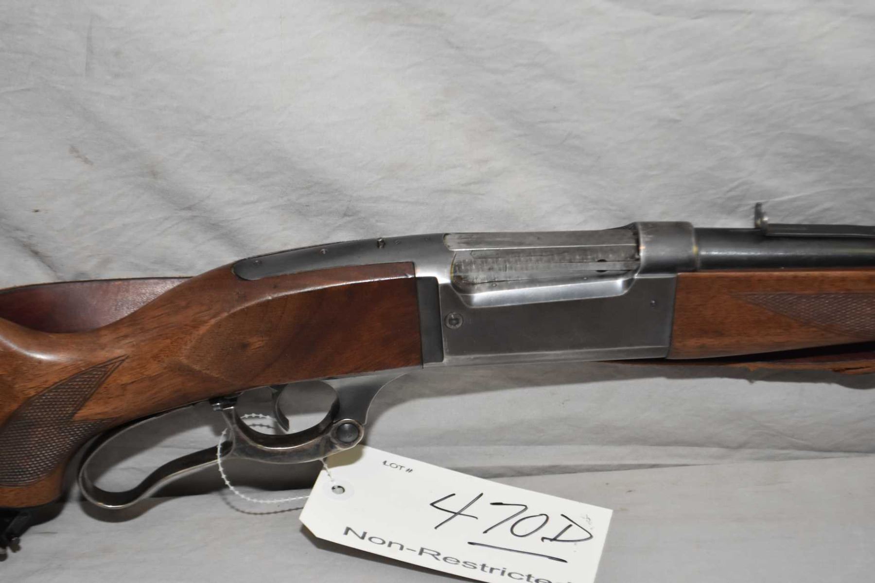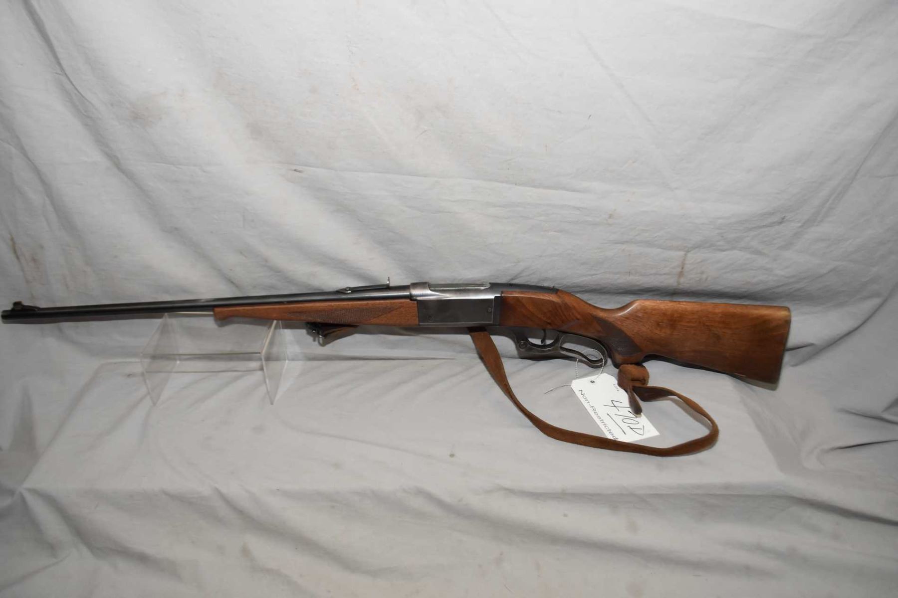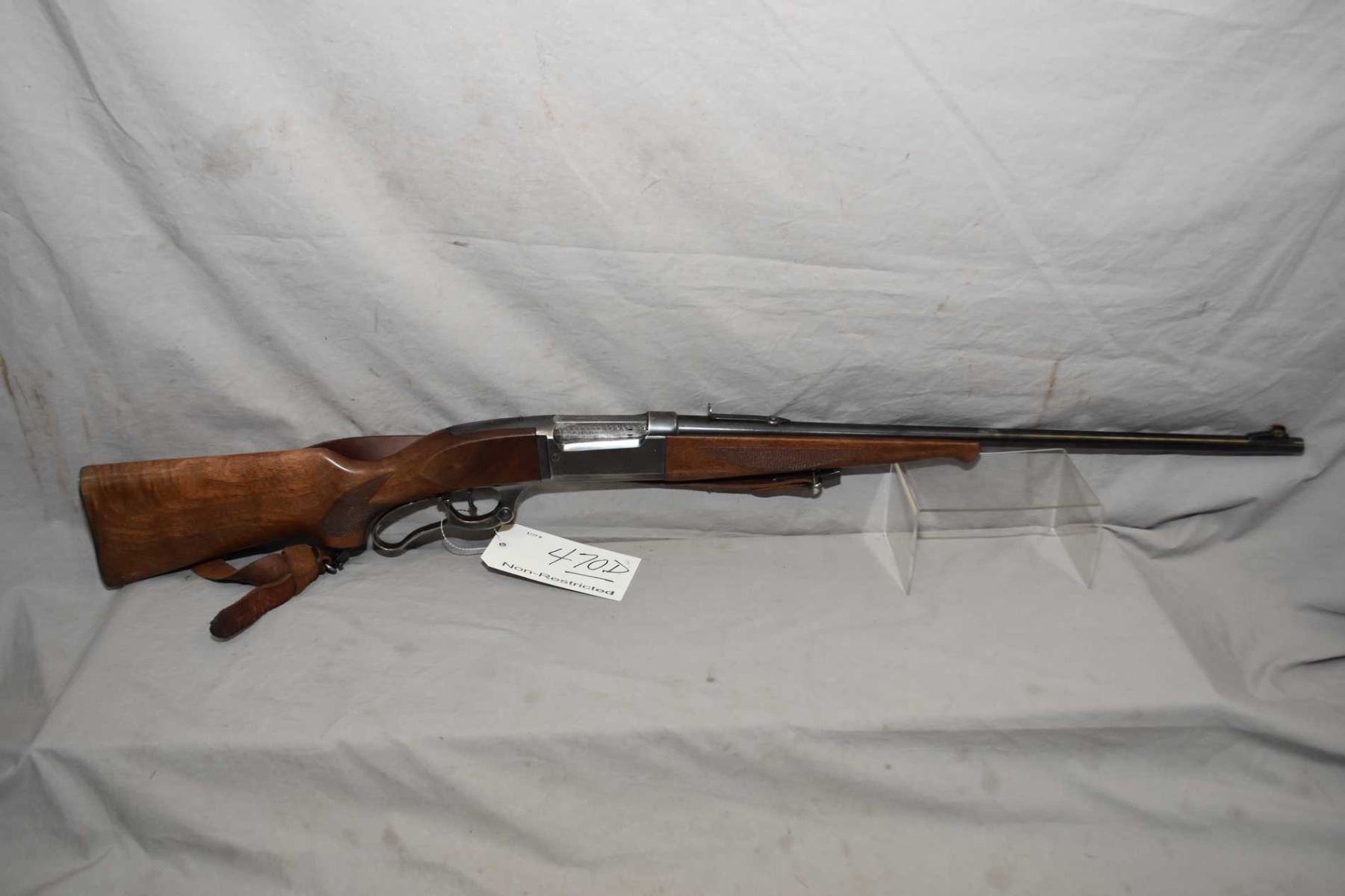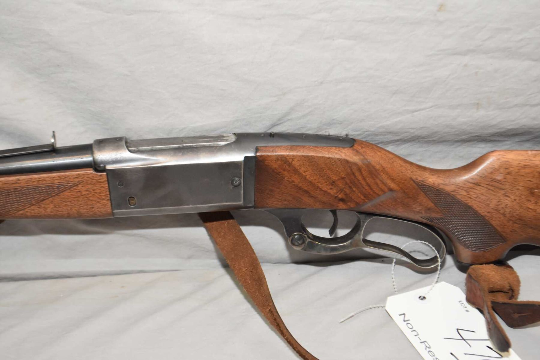 Savage Model 99 .300 Sav Cal Lever Action Riifle w/ 24" bbl [ blued finish, starting to fade, barrel sights, missing the lift, case colored lever, checkered pistol grip stock and forend w/ metal butt plate, also few marks and scratches, leather sling w/ quick off swivels ] Ser # 750698