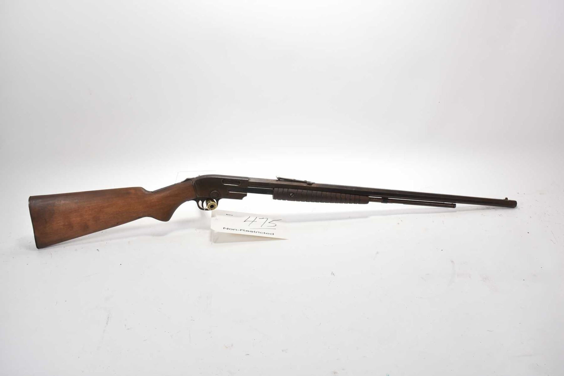 Savage Model1914 .22 LR Cal Tube Fed Pump Action Rifle w/ 24" octagon bbl [ fading blue finish turning brown in most areas, sanded butt stock with crack behind lower tang, cracked and glued forewood, metal butt plate, barrel sights, various marks to wood and scratches to wood and metal , Note : Screw in end of mag tube ] Ser # 13084