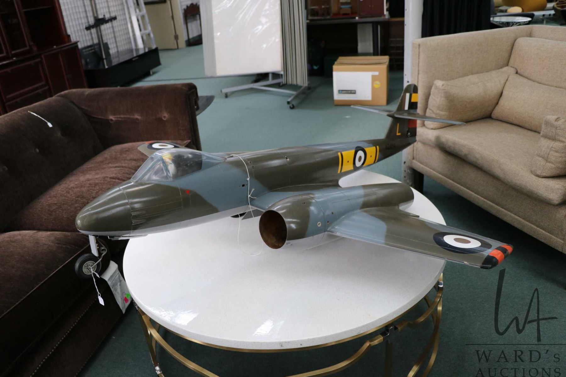 Scale model airplane of a Horsham Gloster Meteor, 62" wingspan. Note: This item cannot be shipped. L