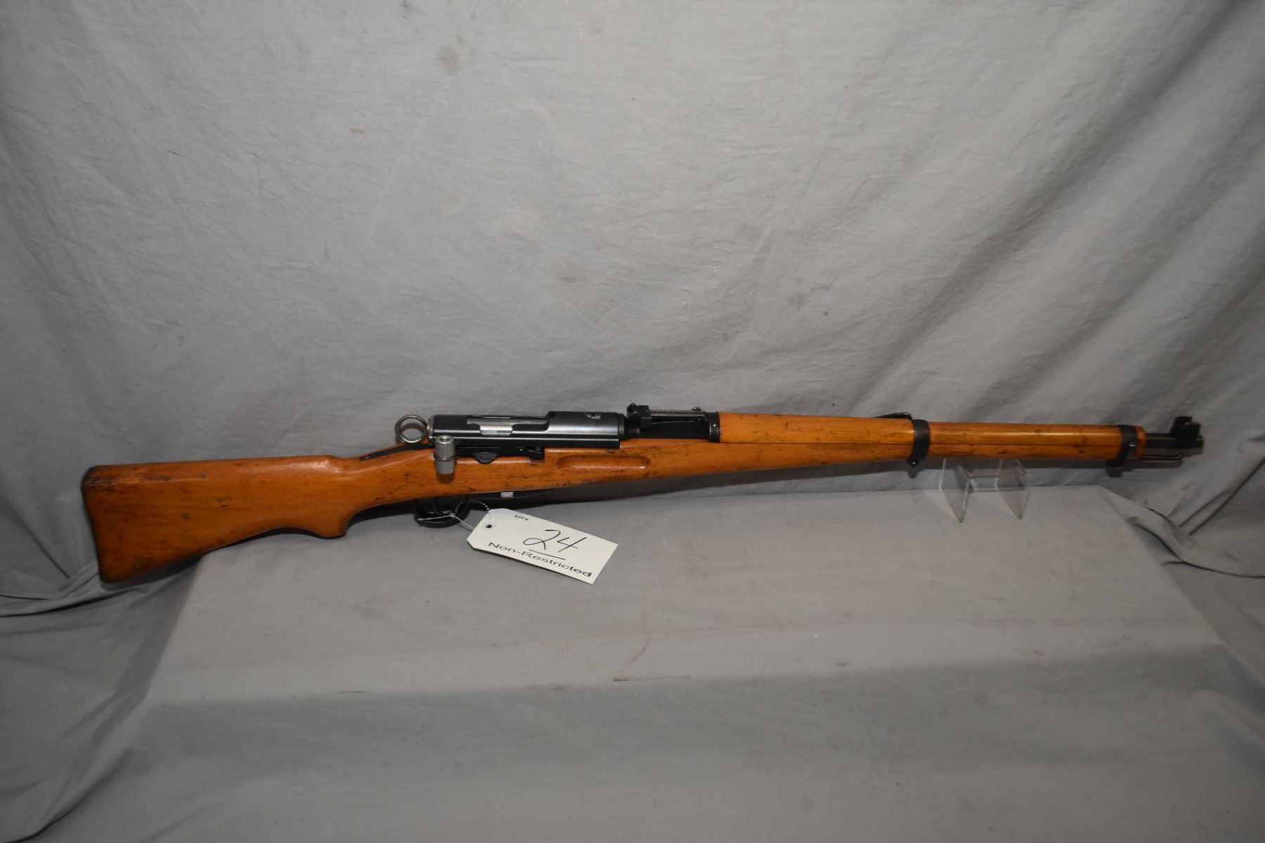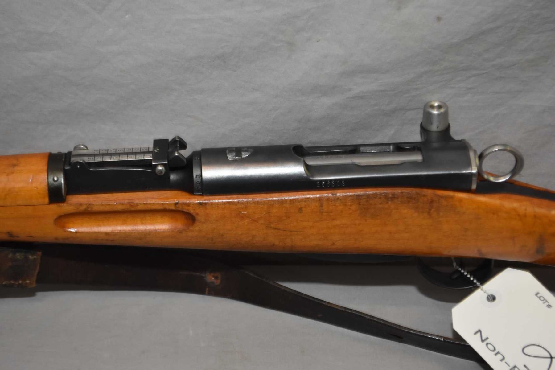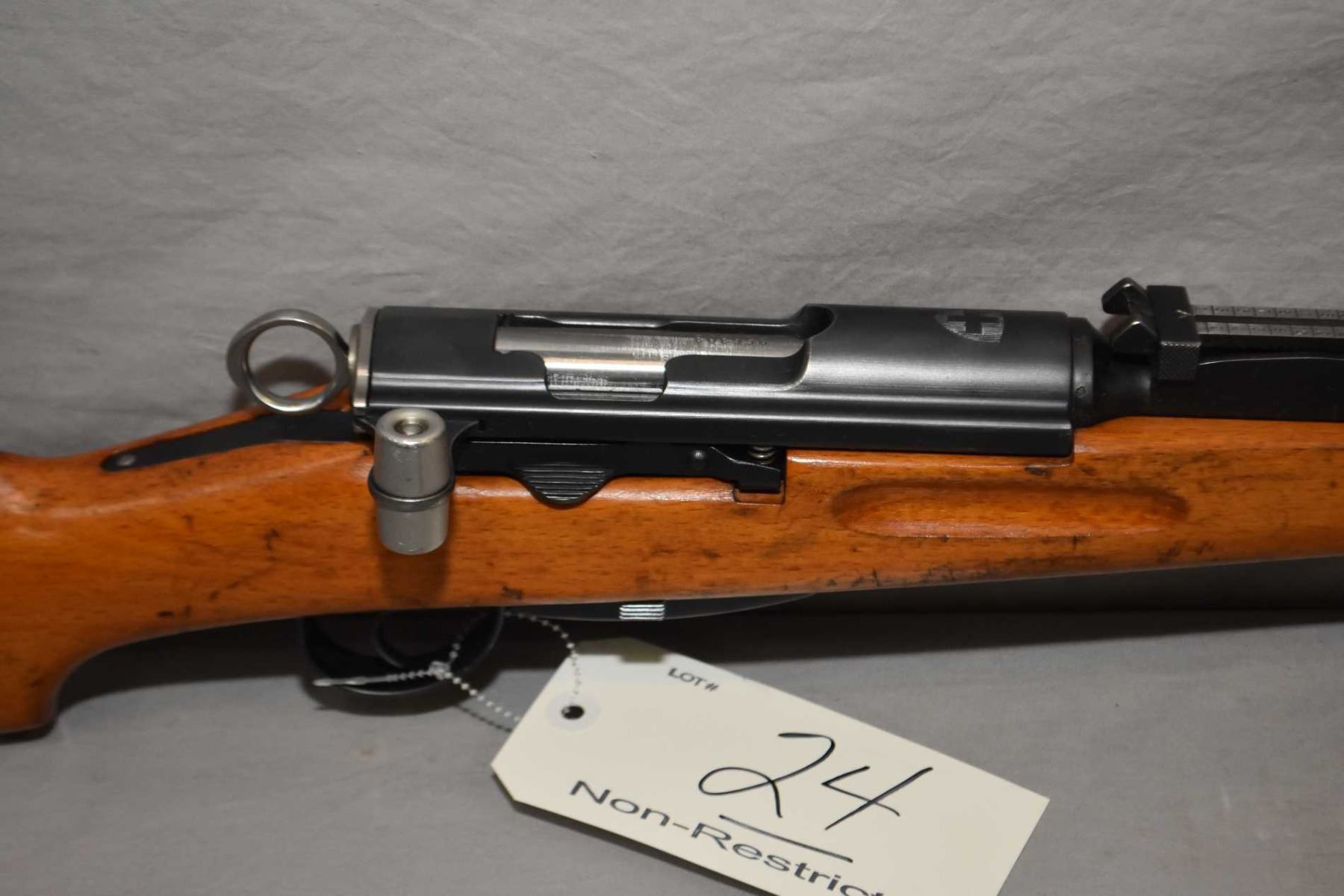 Schmidt Rubin Model K31 7.5 x 55 Swedish Mauser Cal Mag Fed Straight Pull Bolt Action Full Wood Military Rifle w/ 25 1/2" bbl [ good blued finish, fair wood, with some marks, good cartouche, original leather sling, appears to be matching numbers ] Ser # 256303