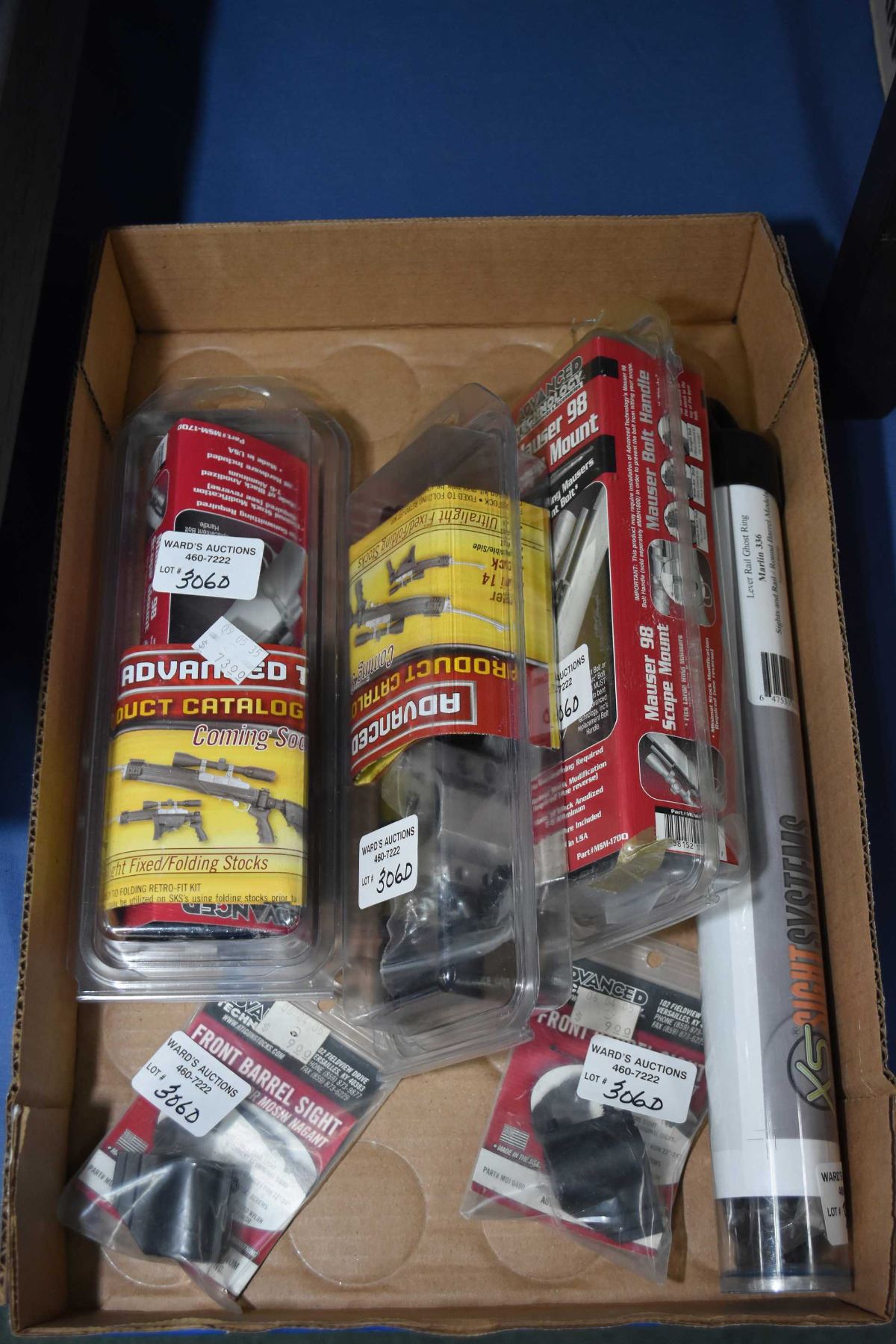 Scope mounts and barrel sights Two Mauser 98 scope mounts, Ruger Mini 14 scope mount and two front b