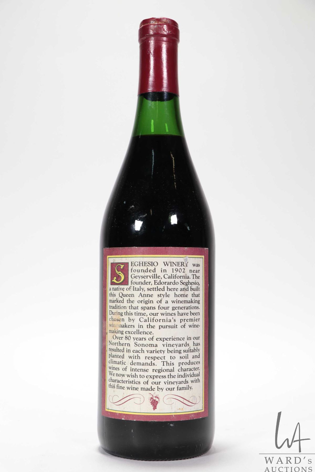 Seghesio/ Northern Sonoma Dry Red Wine/ Marian's Reserve/ 750ml/ 12.5% ABV NOTE: Alcohol cannot be insured by any courier in Canada. Local pick up recommended. Canadian bidders only