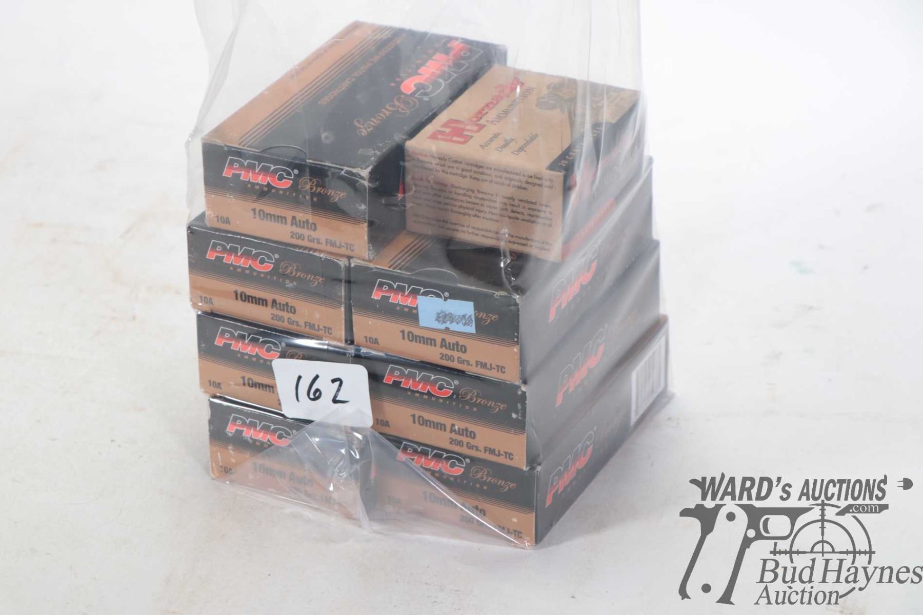Selection of 10mm Auto ammunition including seven full 50 count boxes of PMC 200 grain FMJ-TC and one full 20 count box of Hornady 155 grain XTP