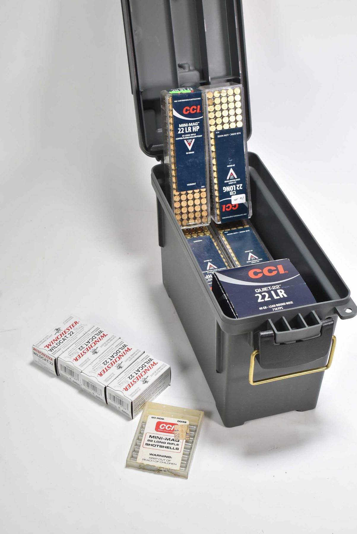 Selection of .22 long ammunition including 1300 rounds of CCL, and 200 rounds of Winchester Wildcat in plastic ammunition box