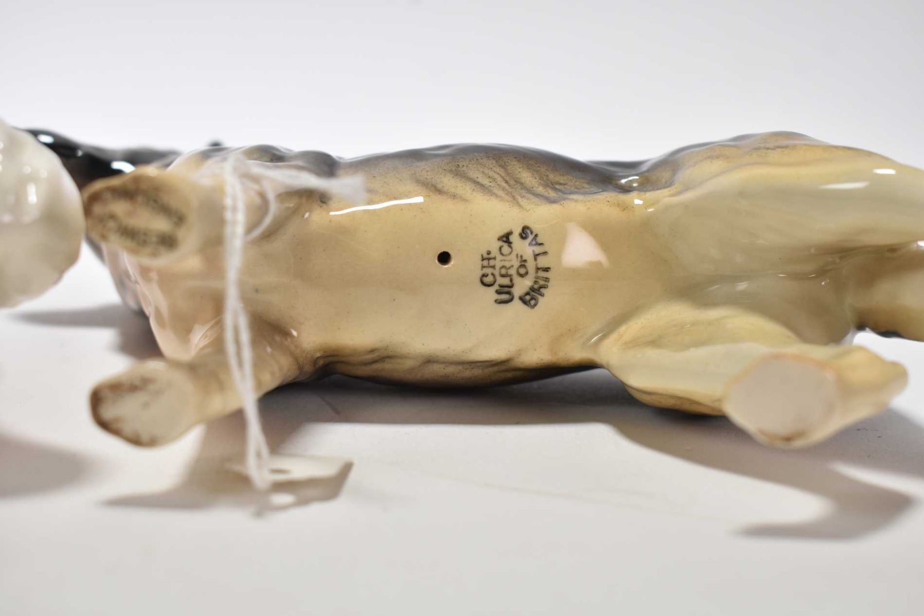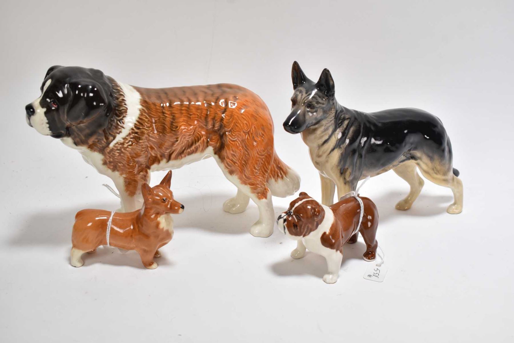 Selection of Beswick dog figures including St. Bernard, Alsatian, bull dog and a Corgi