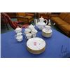 Selection of Danish made hand painted Bing & Grondhal, Copenhagen porcelain including eight 7 1/2" plates, eight saucers, eight demi tasses, a coffee pot, creamer and two lidded sugars.