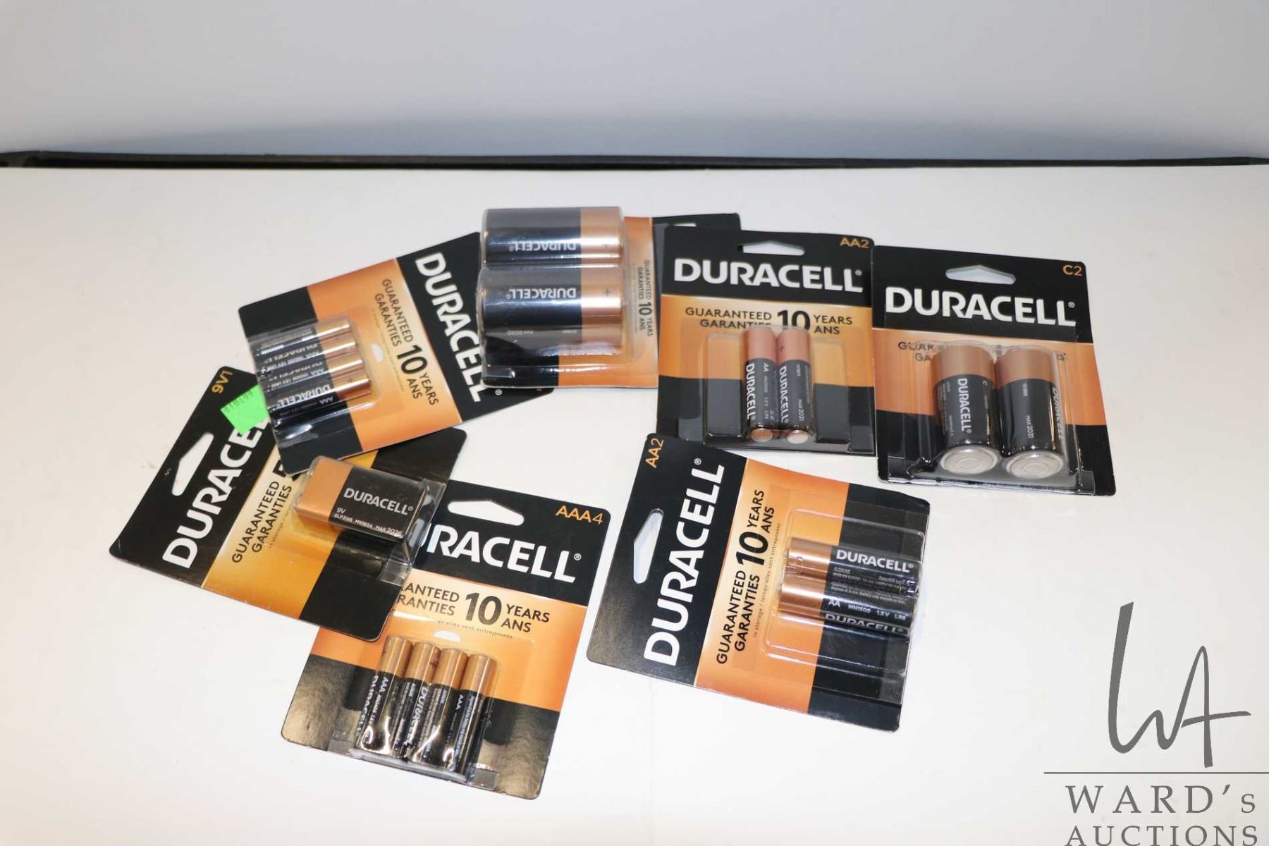 Selection of Duracell batteries including 8 AAA, 4 AA, 1 9V, 2 C cells and 2 D cells