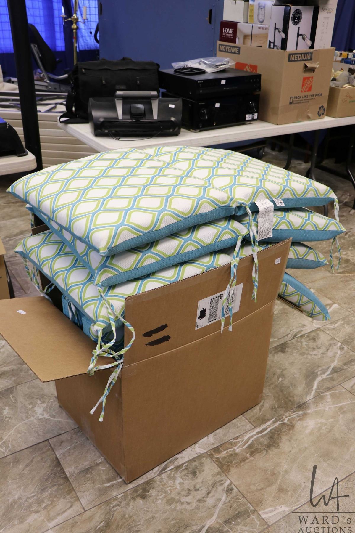 Selection of Hampton Bay chair cushions including four chairs, two loungers and two cushions