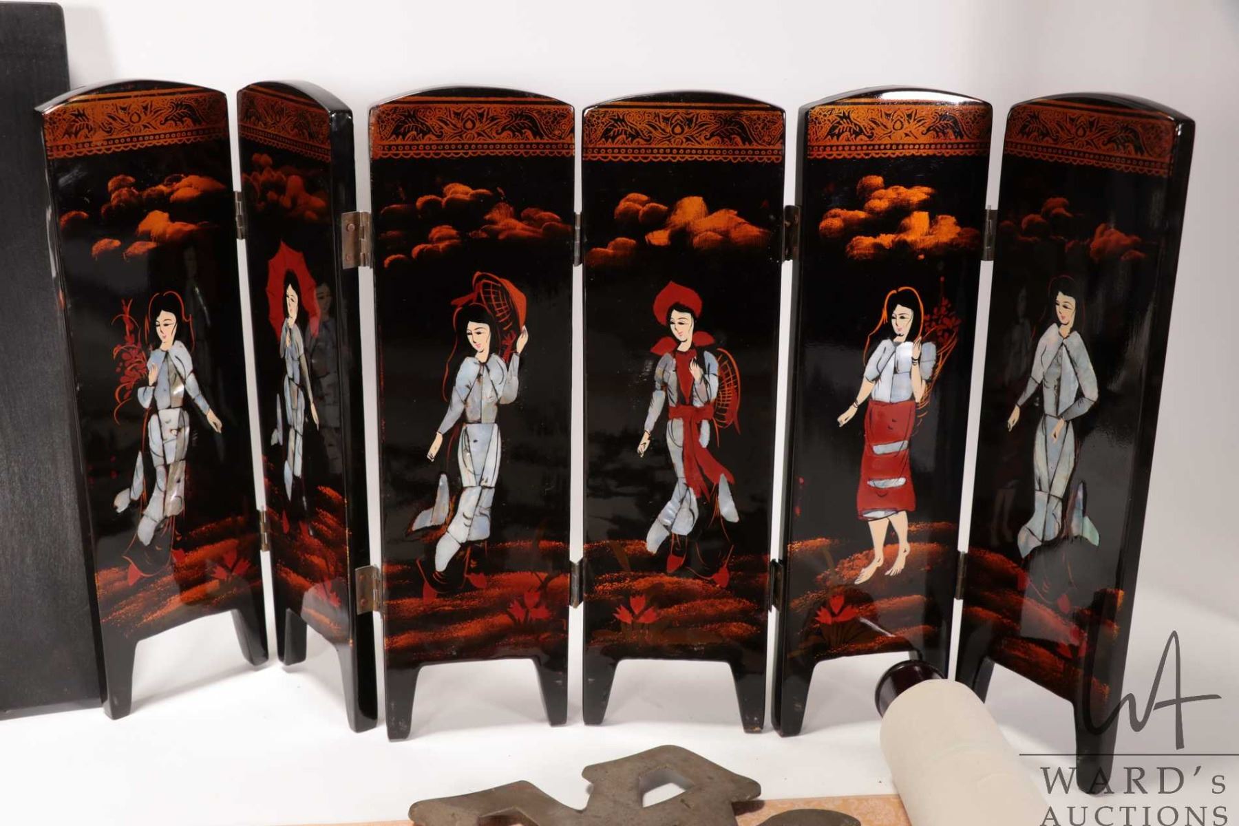 Selection of Japanese collectibles including lacquered mini six panel screen, 10 1/2" in height, Ori
