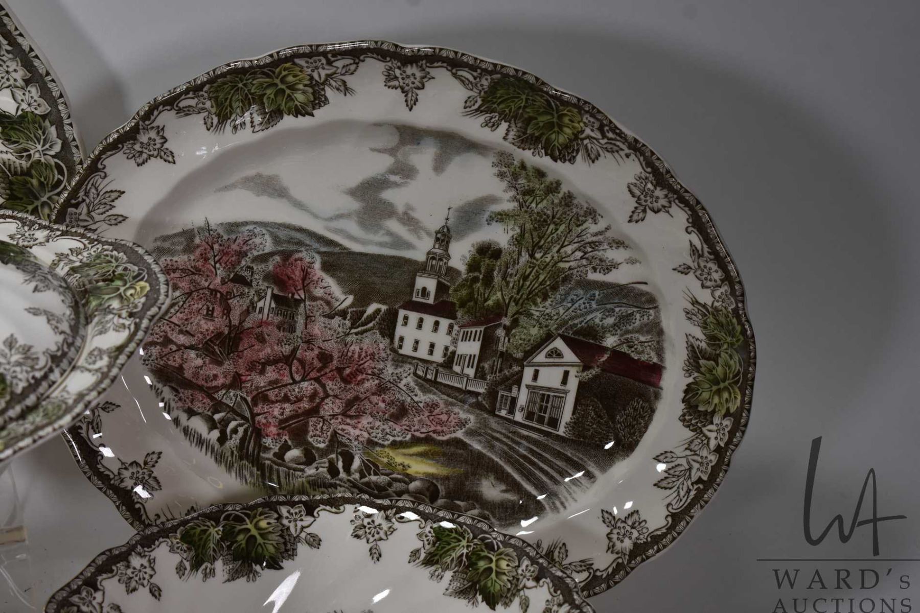 Selection of Johnson Bros. "Friendly Village" dinnerware including table settings, servicing pieces,