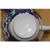 Selection of Johnson Bros. Willow pattern dinnerware including twelve each of 10" plates, 6" bowls, eleven 6" plates, twelve cups, eleven saucers, salt and pepper shaker and lidded butter dish. Note: No shipping for this lot. Local pickup only