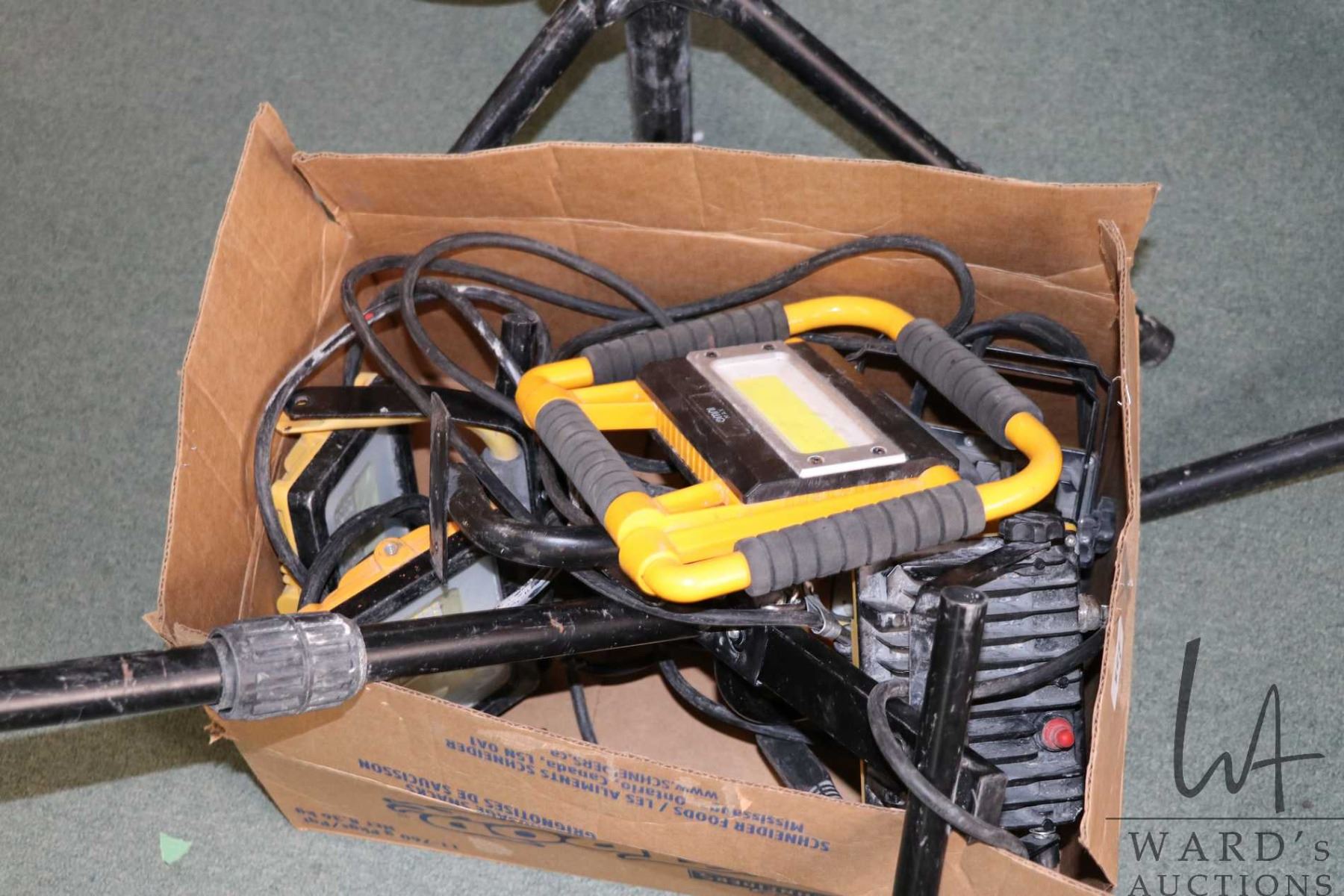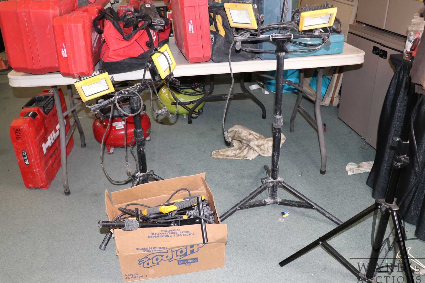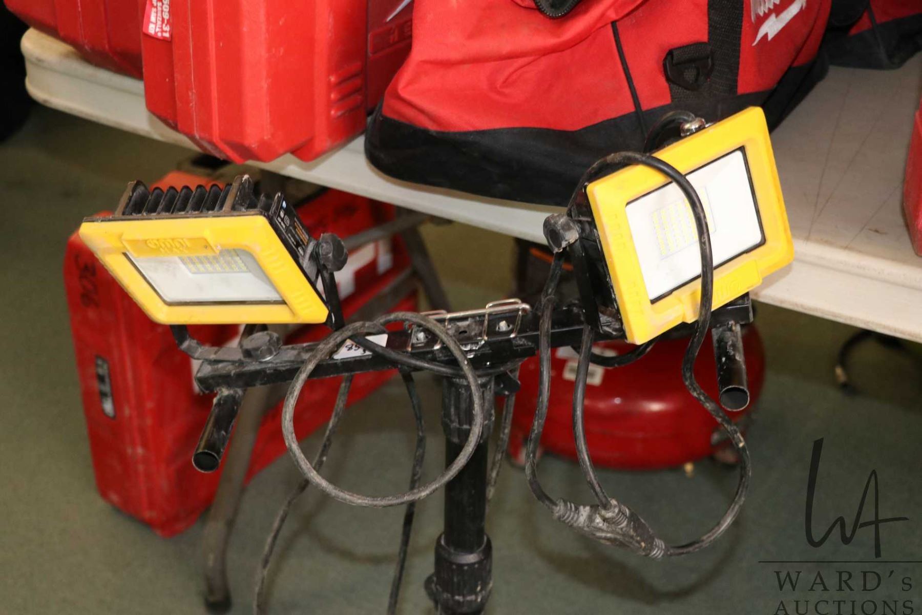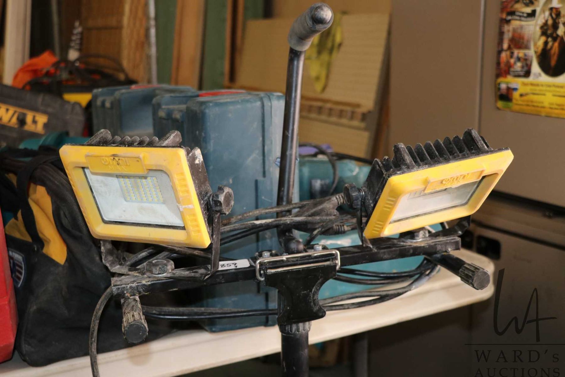 Selection of LED work lights and stands, all working