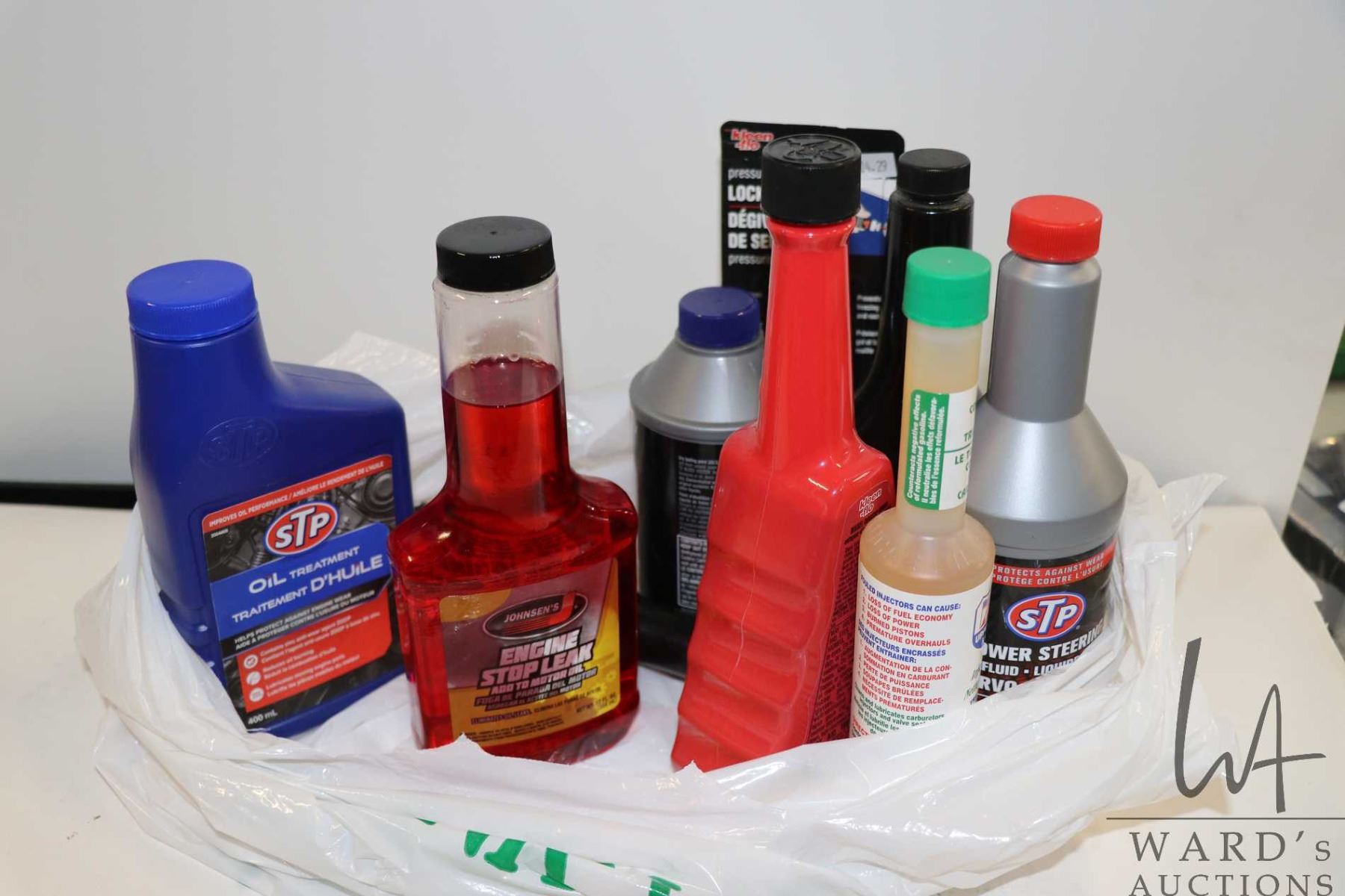 Selection of Lubricants including one 395ml container of Kellen-Flo Diesel injector cleaner, one 355 ml container of Johnsen's Engine Stop Leak, one 350ml continer of Kleen- Flo Brake fluid, one 150ml container of Turbo Power Gasline anti-freeze, one 155 ml container of Lucas Upper Cycle Lubricant, one 350ml container of STP Power Steering fluid STP and one 354ml container of Xcel engine flush, one 400ml oil treatment and a container of lock de-icer