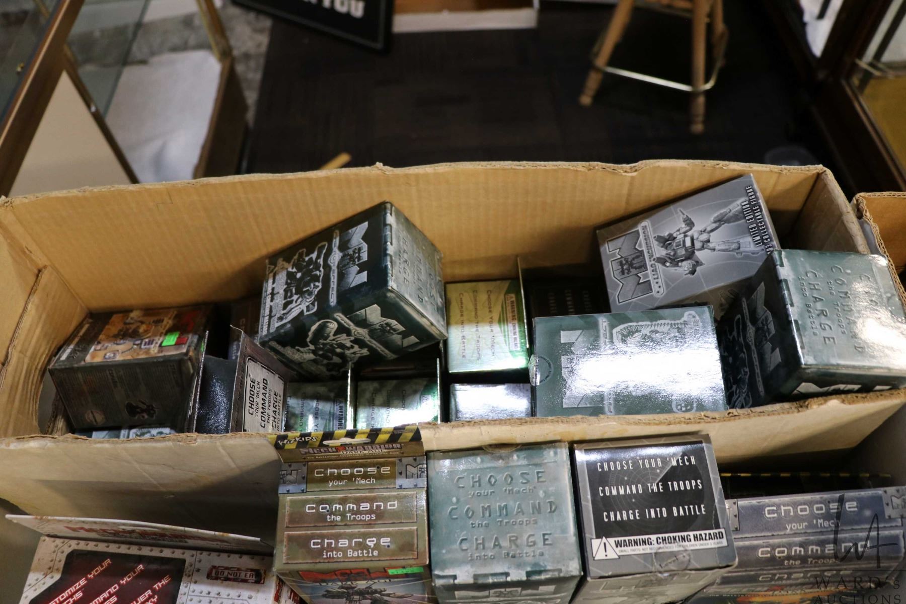 Selection of Mech Warrior Dark Age figures and Mech Warrior game starter kits. Important: Pickup is in Edmonton. Long comic boxes (28 x 8 x 11.5 and 23kg) will be shipped in 2 boxes approximately 11 x 9 x 12 and 13kg each through Canada Post. Long boxes can be palletized for large invoices. Details to follow