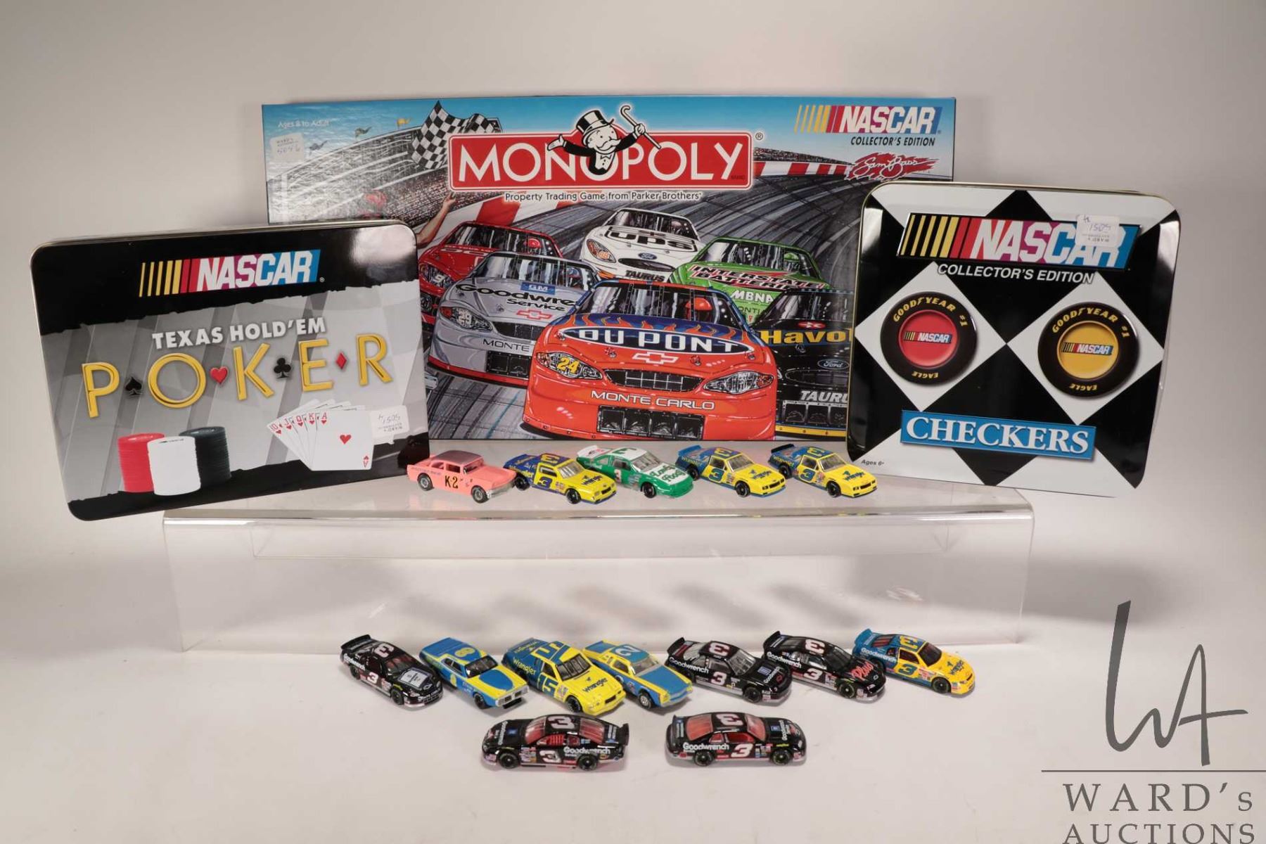 Selection of Nascar collectibles including Nascar Collector's Edition Monopoly, Texas Hold' Em poker